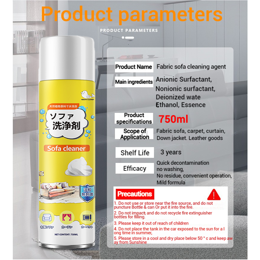 Sofa Cleaning Spray 750ml No Washing Sofa Stain Remover Foam Cleaner Spray Carpet Clean Spray