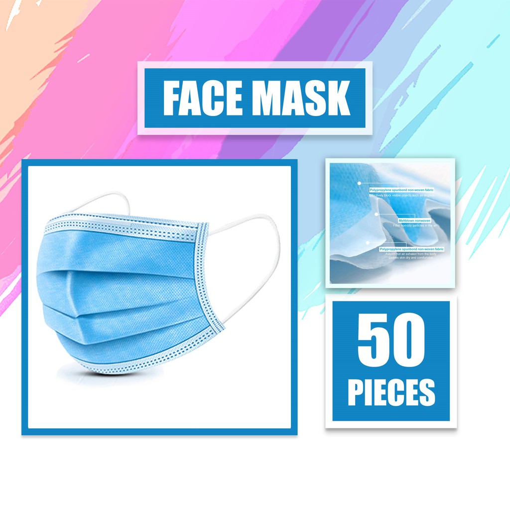 3 Ply Disposable Surgical Face Mask 50 Pcs With Box Facemask N88