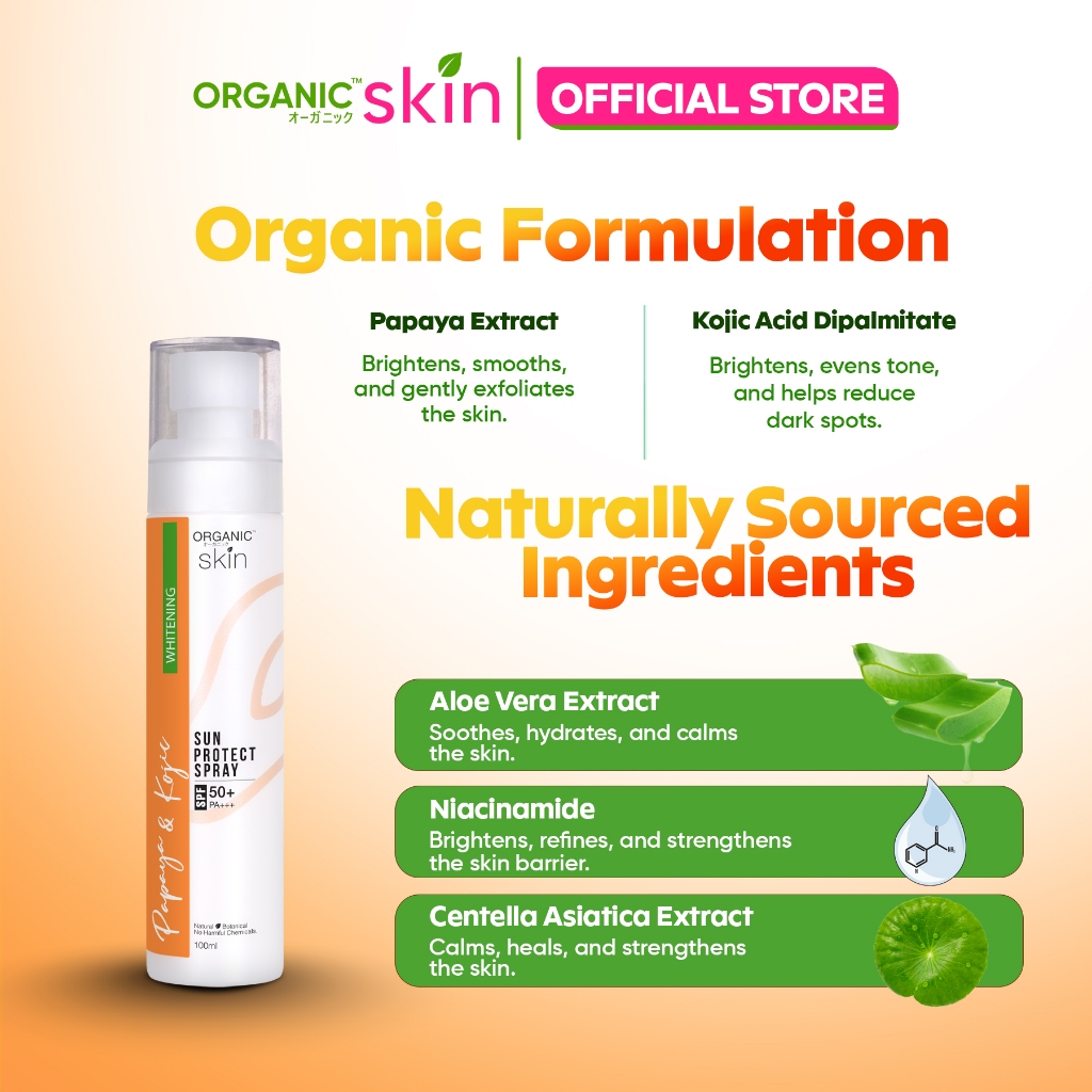Organic Skin Japan Papaya&Kojic Sunscreen spf50 Sunblock Face and Body Spray Whitening Skin Care