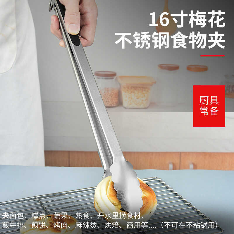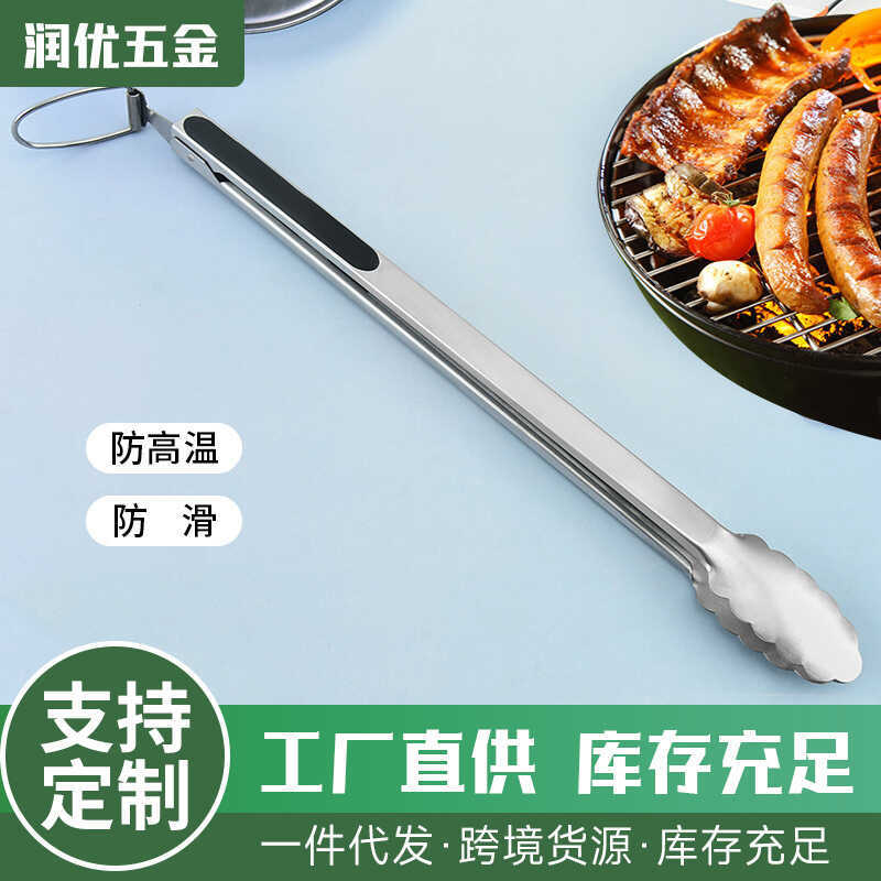 Extended Food 430 Stainless Steel Tool Kitchen Anti-scald Korean Style BBQ Steak Tongs