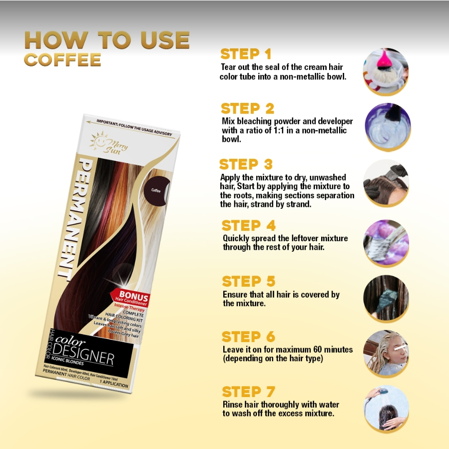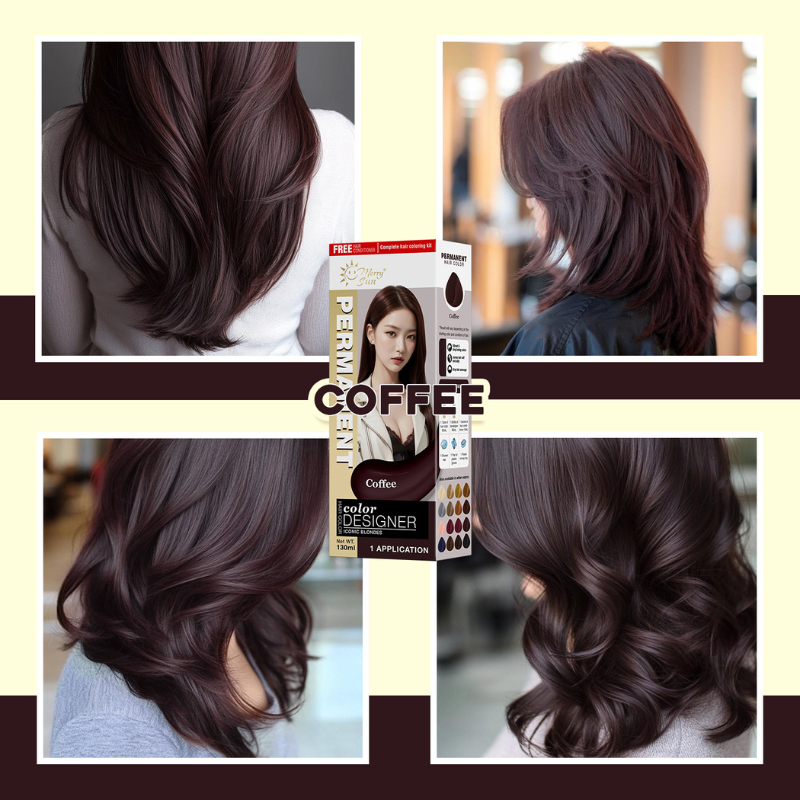 Merry Sun Permanent Hair Color 60ml, Hair dye Cream for Salon , Plant Based Formula(Coffee)