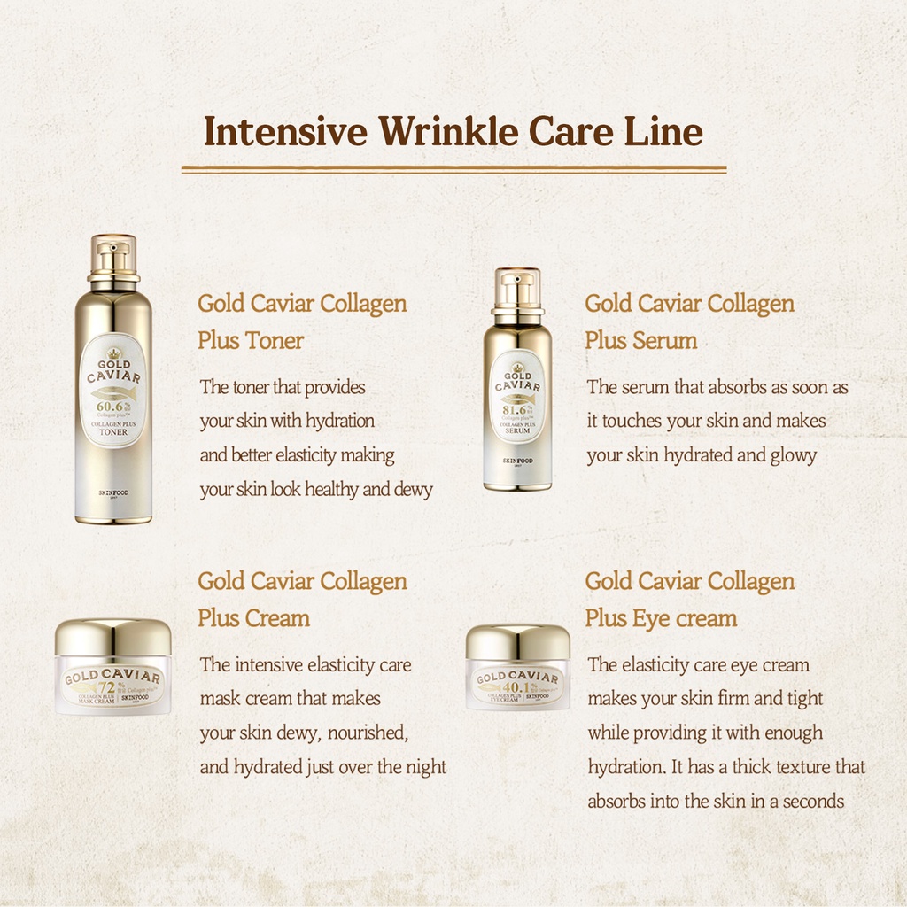 [SKINFOOD Official] Gold Caviar Collagen Plus Toner 120ml / 60.6% Collagen Plus Anti-Aging Toner for Deep Wrinkle & Fine Wrinkle / Plumping Skin / Deep Hydrating with Collagen & Gold