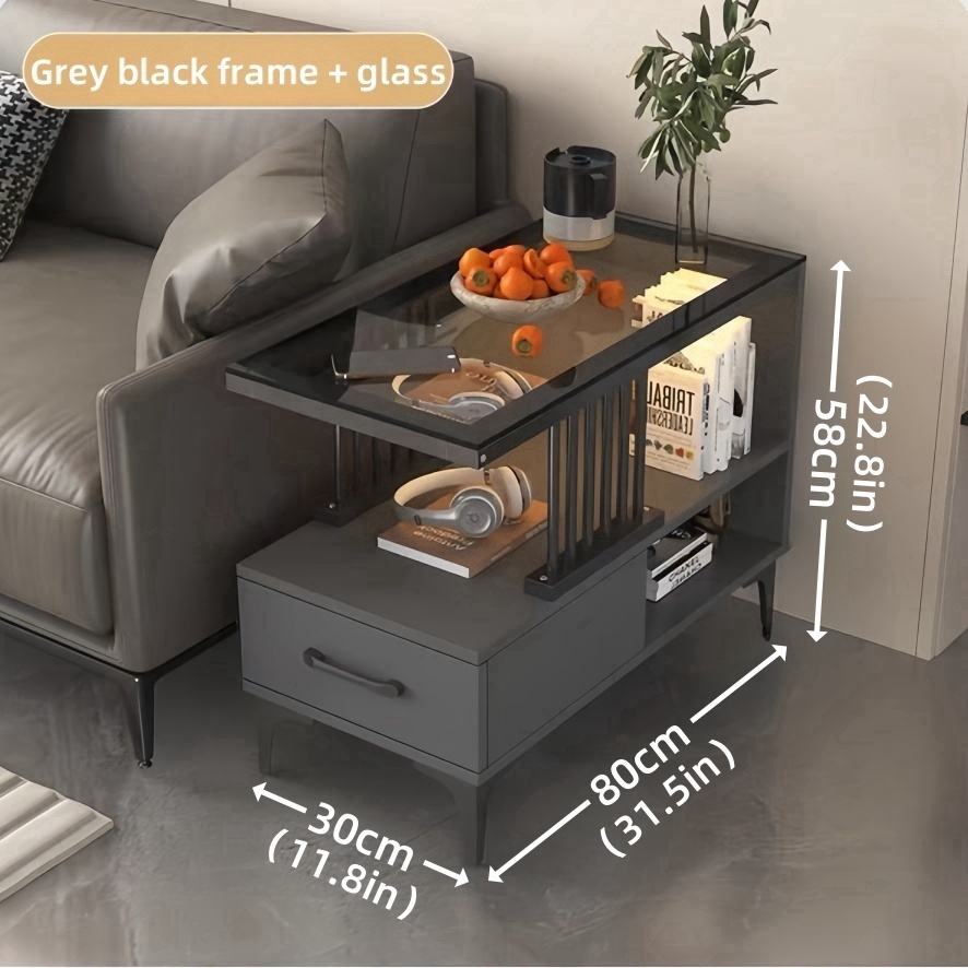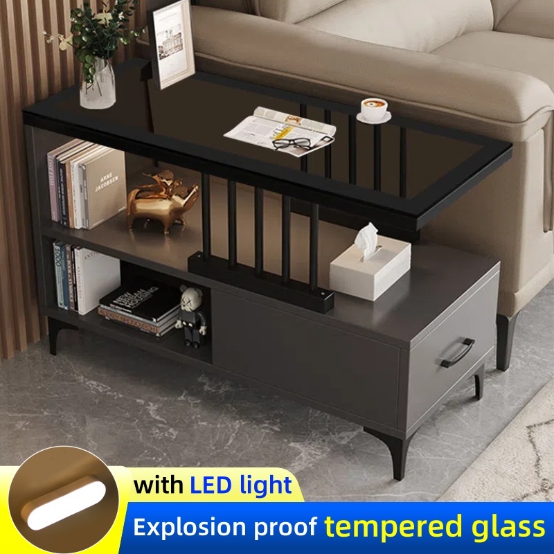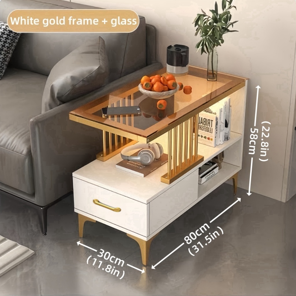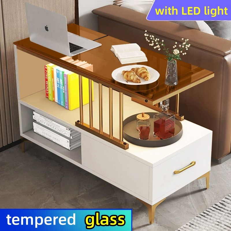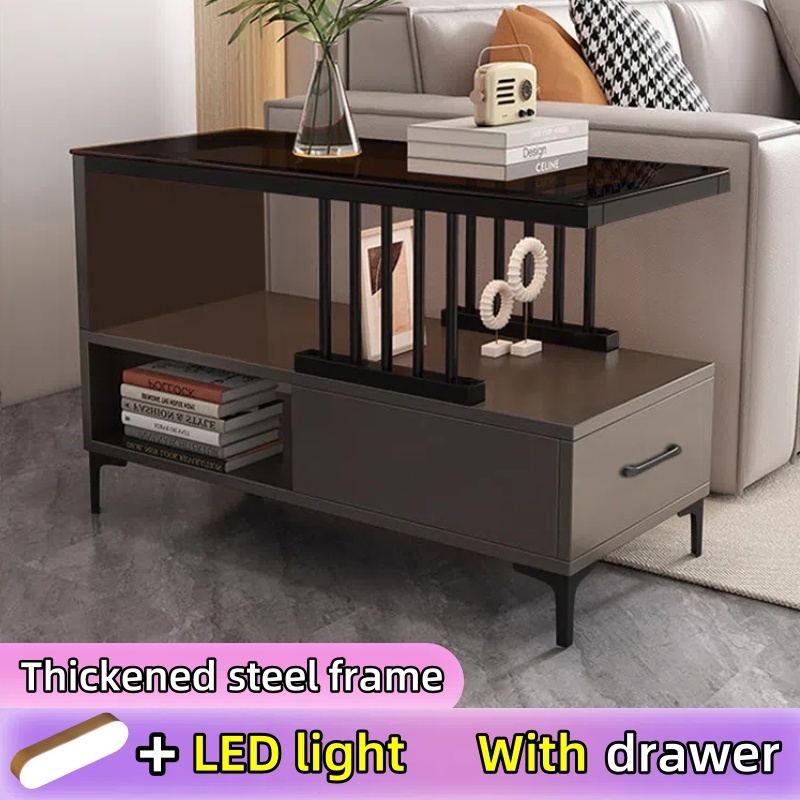 Sofa Side Table Living Room Side Cabinet With Drawer LED Coffee Table Glass Center Table Tea Table