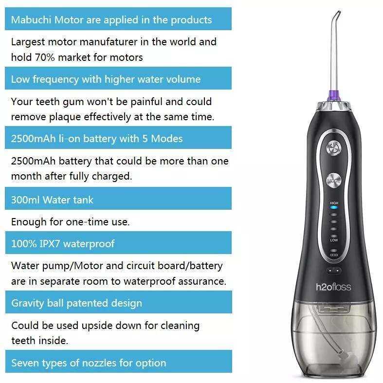 H2ofloss Hf-6 Portable Water Flosser Irrigator With Travel Case 8 Tips Floss Oral Ca5