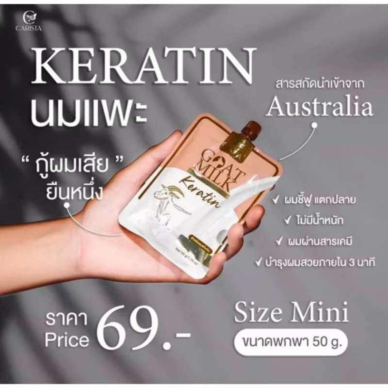 GOAT MILK Keratin Treatment Sachet CARISTA Treats Dry And Damaged Hair.