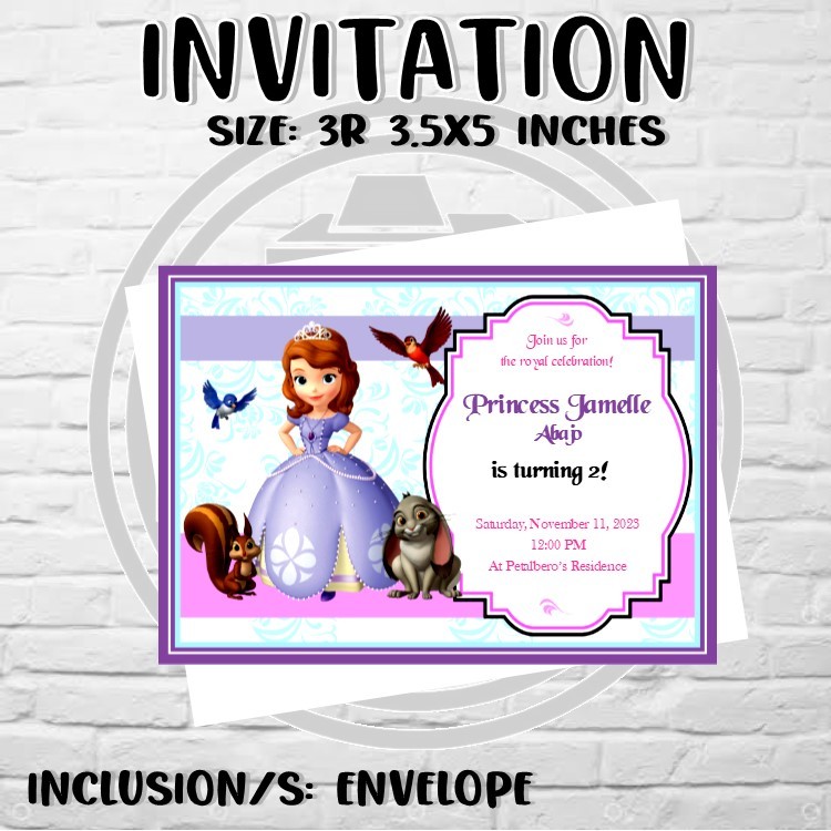 Sofia the first theme invitation