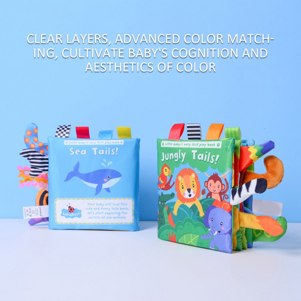 Soft Baby Cloth Books Animal Tails Crinkle Cloth Books Infants Touch and Feel Development Fabric Book Early Learning Cognize Reading Toys for 0-36M Baby