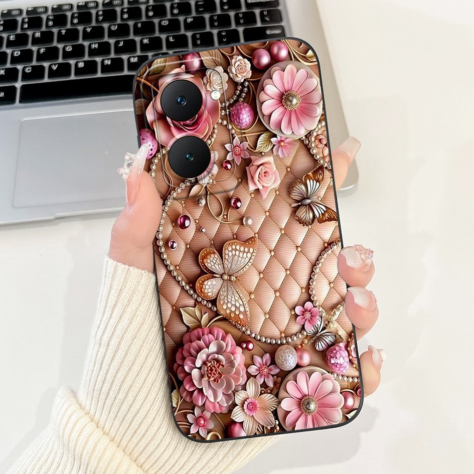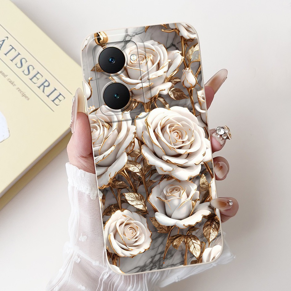 Soft Casing For Vivo Y03 4G V2332 Case New Fashion Flower Rose Pattern Silicone Cover For Vivo Y03T Y37 Y37M Y18e Y18i Bumper
