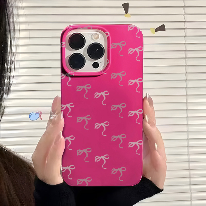 Soft Cute Rose Pink Bowknots Case Compatible for IPhone 16 15 14 12 13 11 Pro XS Max XR X 8 7 Plus TPU Shockproof Aesthetic Waterproof Black Phone Cover Silicone Casing