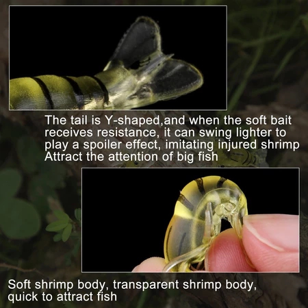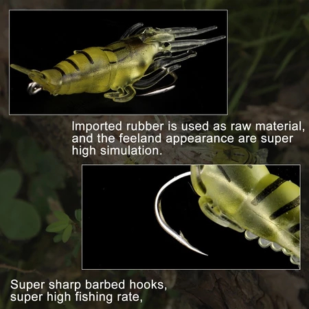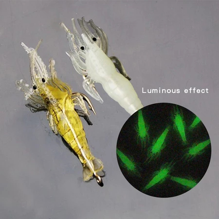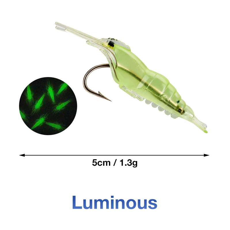 Soft Shrimp Bait Luminous Artificial Worm Fishing Lure With Hook Silicone Prawn Bait 1.3g/5cm