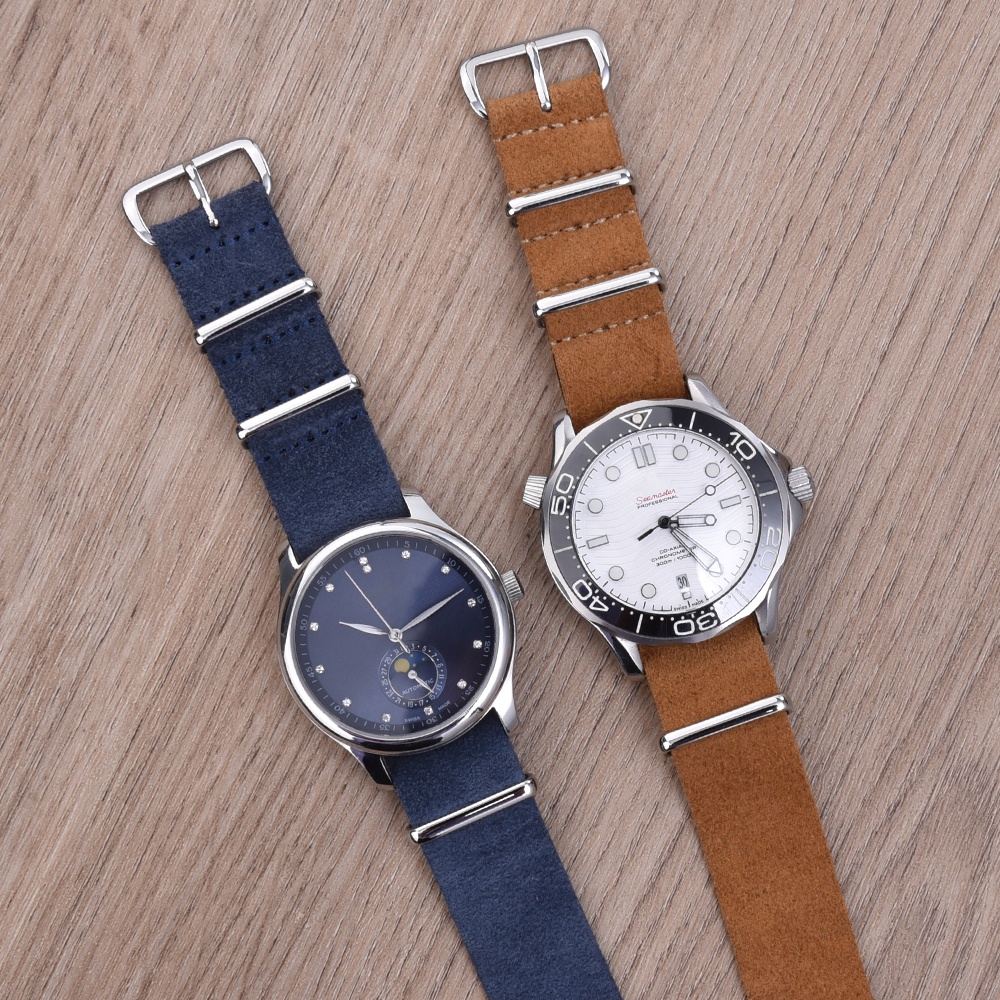 Soft Suede Leather Watch Strap Band 20mm 22mm Strap Genuine Leather Watch Belt Handmade Stitching Watchstrap Suede Leather Wristband Watch Accessories Strap Replacement