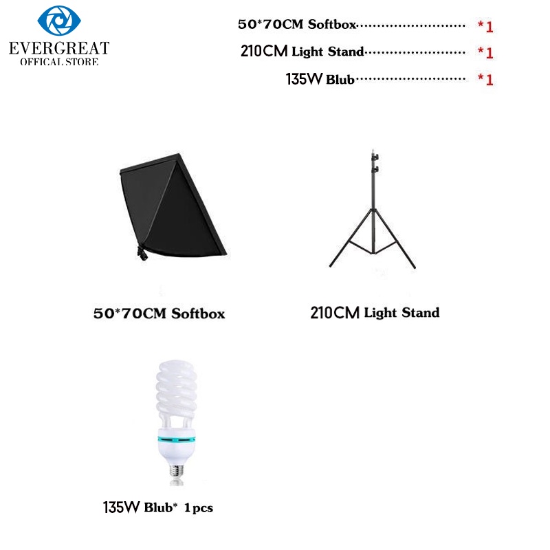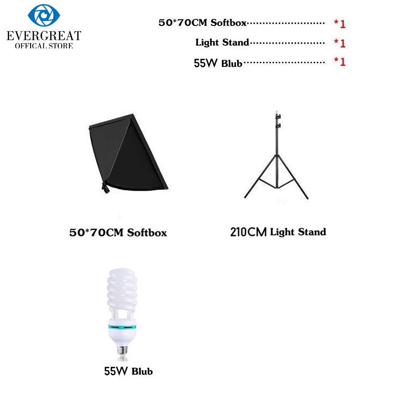 Softbox Lighting Kits Photo Shooting Light System Photographic Bulbs 50x70CM