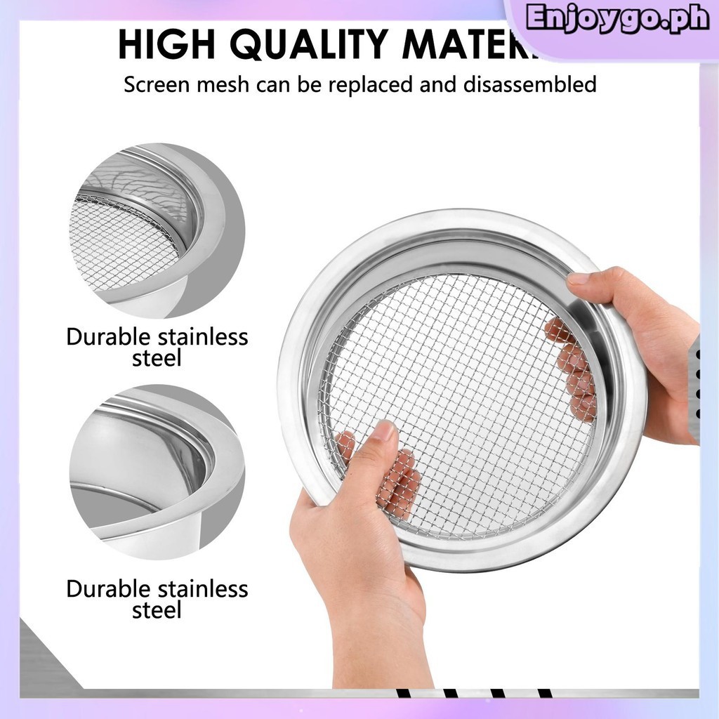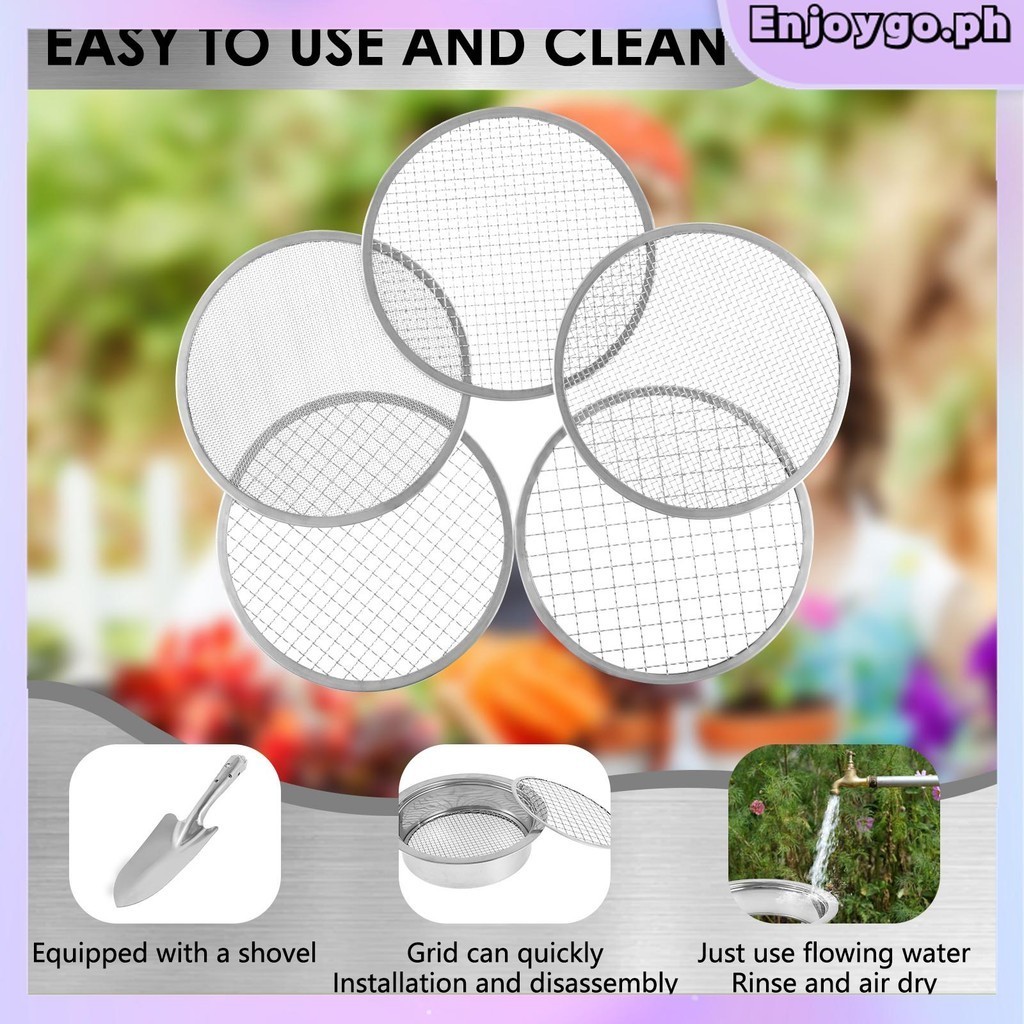 Soil Sieve Set with 9.45inch Diameter 5 Grid Sizes 1/3/6/9/12mm Interchangeable Meshes Stainless Steel Riddle Sieve Set with Shovel Soil Sieve Sifter Set for Gardening SHOPSKC4210