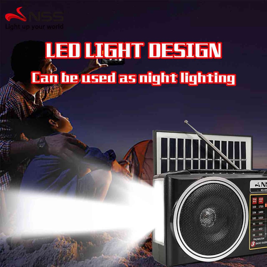 Solar Bluetooth Radio Rechargeable Radio with Emergency Light With 3 BAND FM/AM/SW USB/TF PLAYER