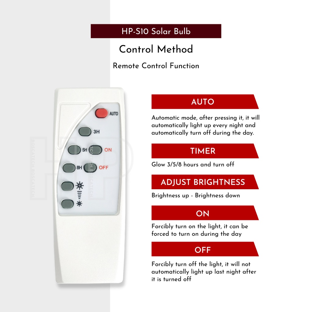 Solar Bulb LED IP65 S10 100W Solar Panel 8w Remote control Light control Time switch