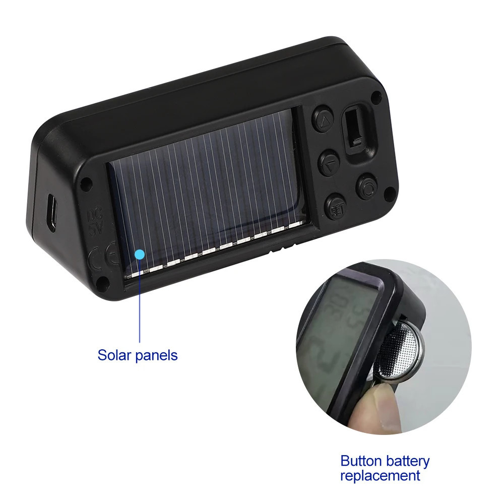 Solar Car Digital Clock Date Week Temperature Humidity LCD Backlit Display for Dashboard Car Clock Automobiles Internal Stick-On