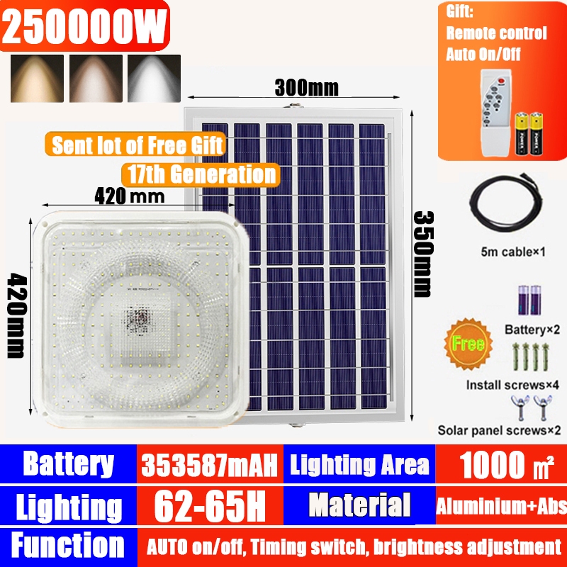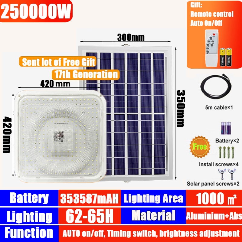 Solar Ceiling Light 250000W Solar Light Outdoor Waterproof Solar Light Indoor Light With solar panel