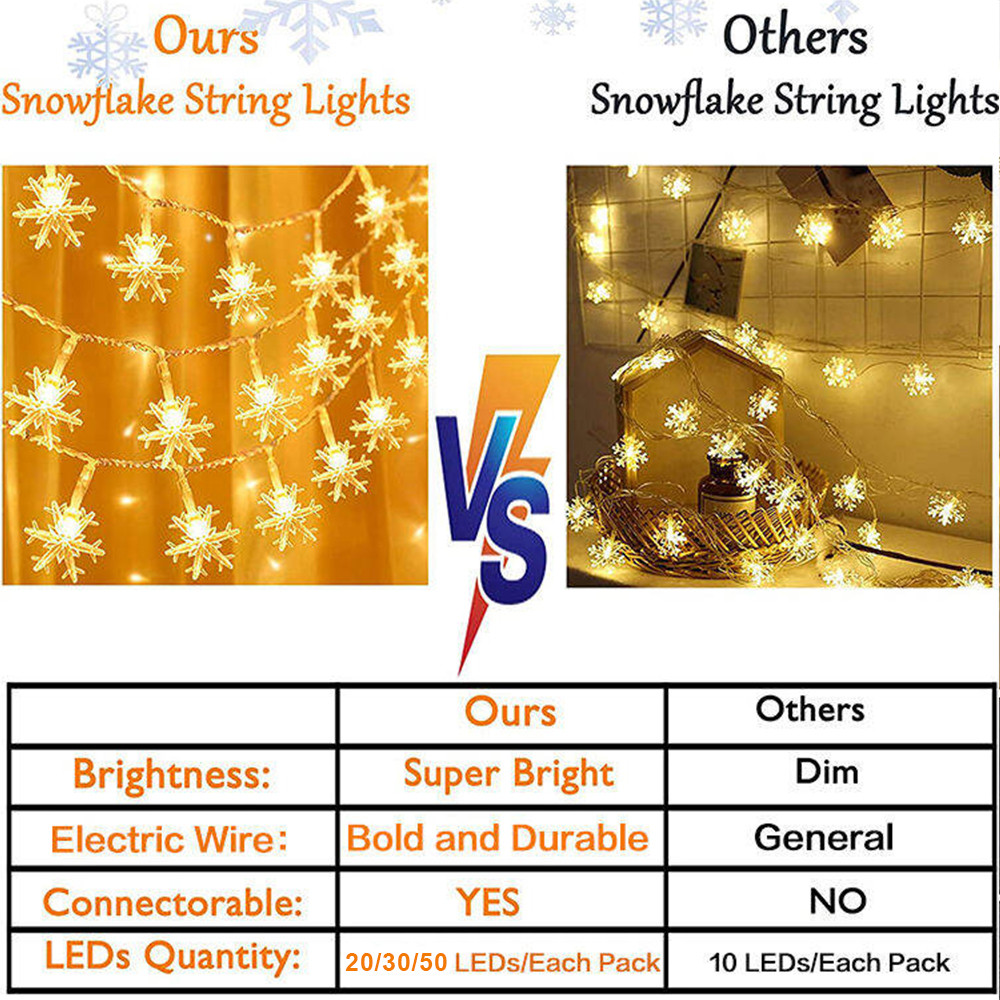 Solar Christmas Lights Snowflake String Lights 8 Modes Party Decoration LED String Lights
