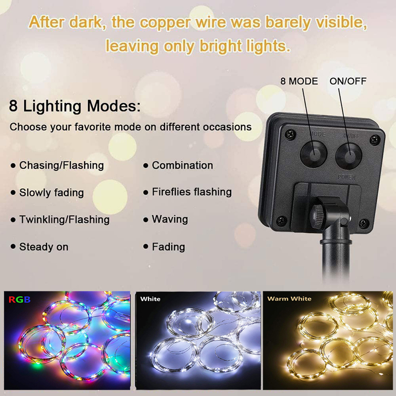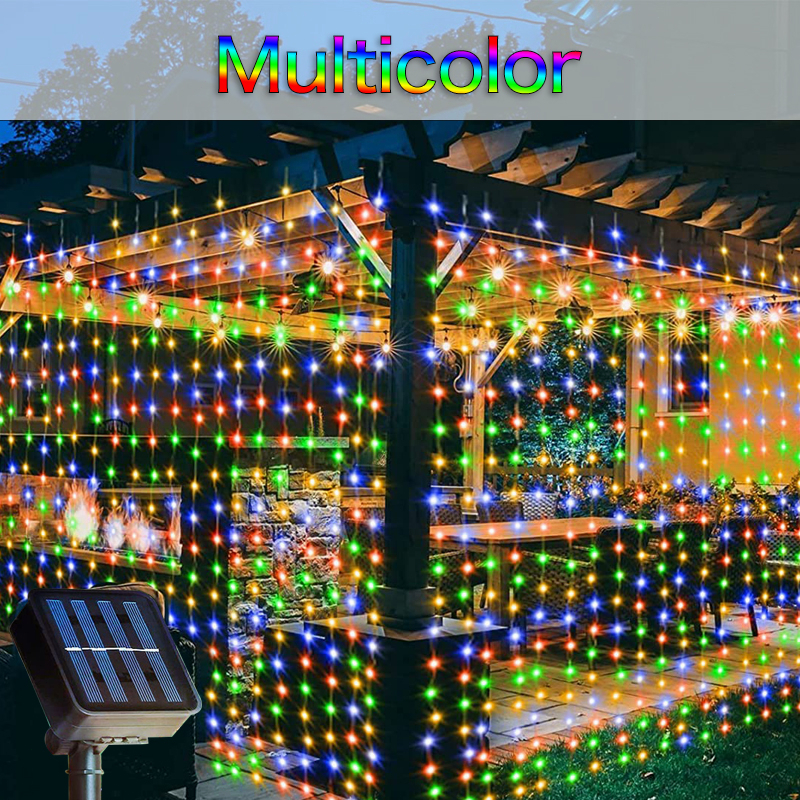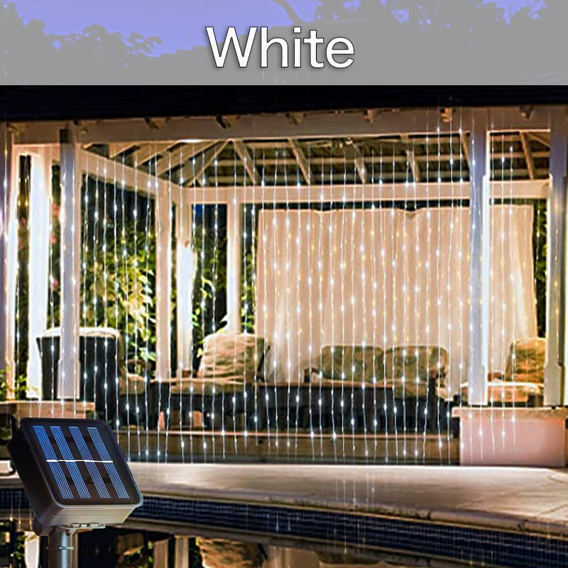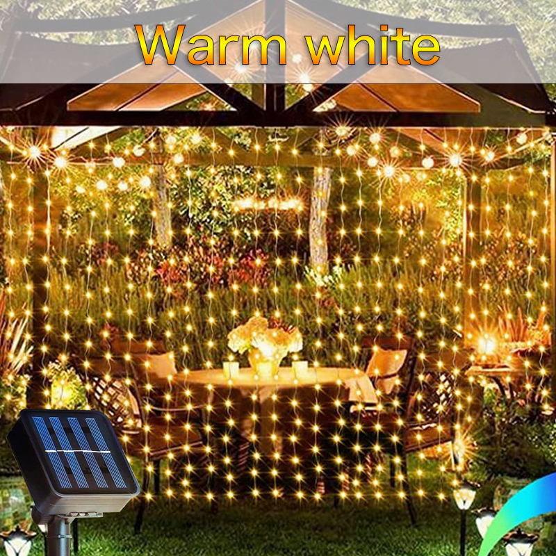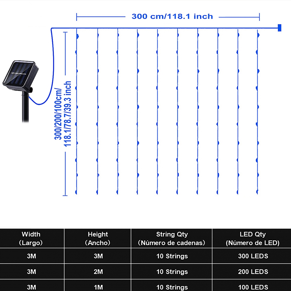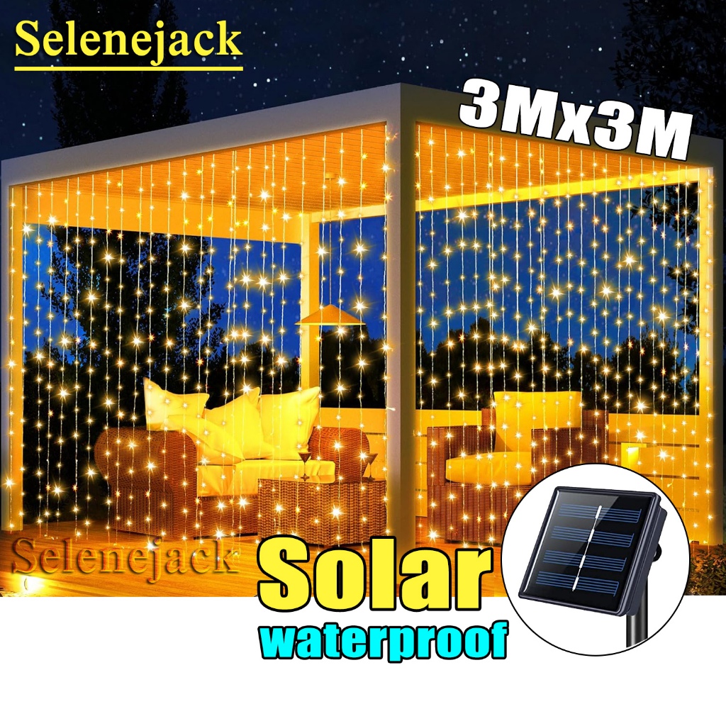 Solar Curtain Lights 3x3M 300Led 8Mode Outdoor Waterproof for Fairy Christmas House Garden Decor
