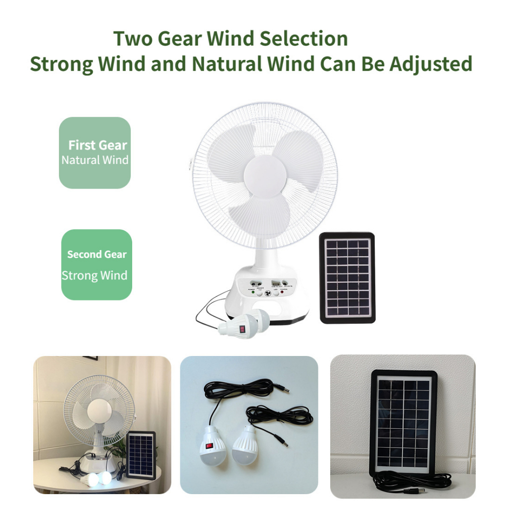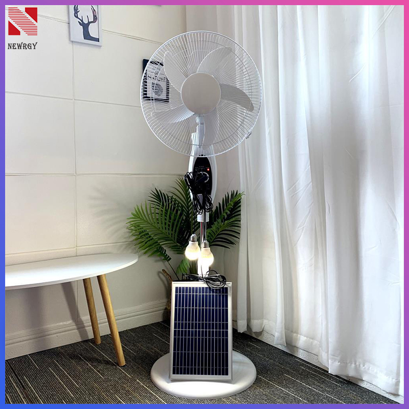 Solar Electric Fan With Panel 12/16 Inch Standard Rechargeable Portable Solar Fan With LED Lighting