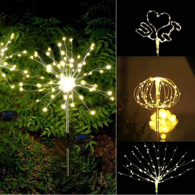 Solar Garden Lights Outdoor Waterproof LED Firework Lamps For Fowerbed Home Tree Flower Xmas
