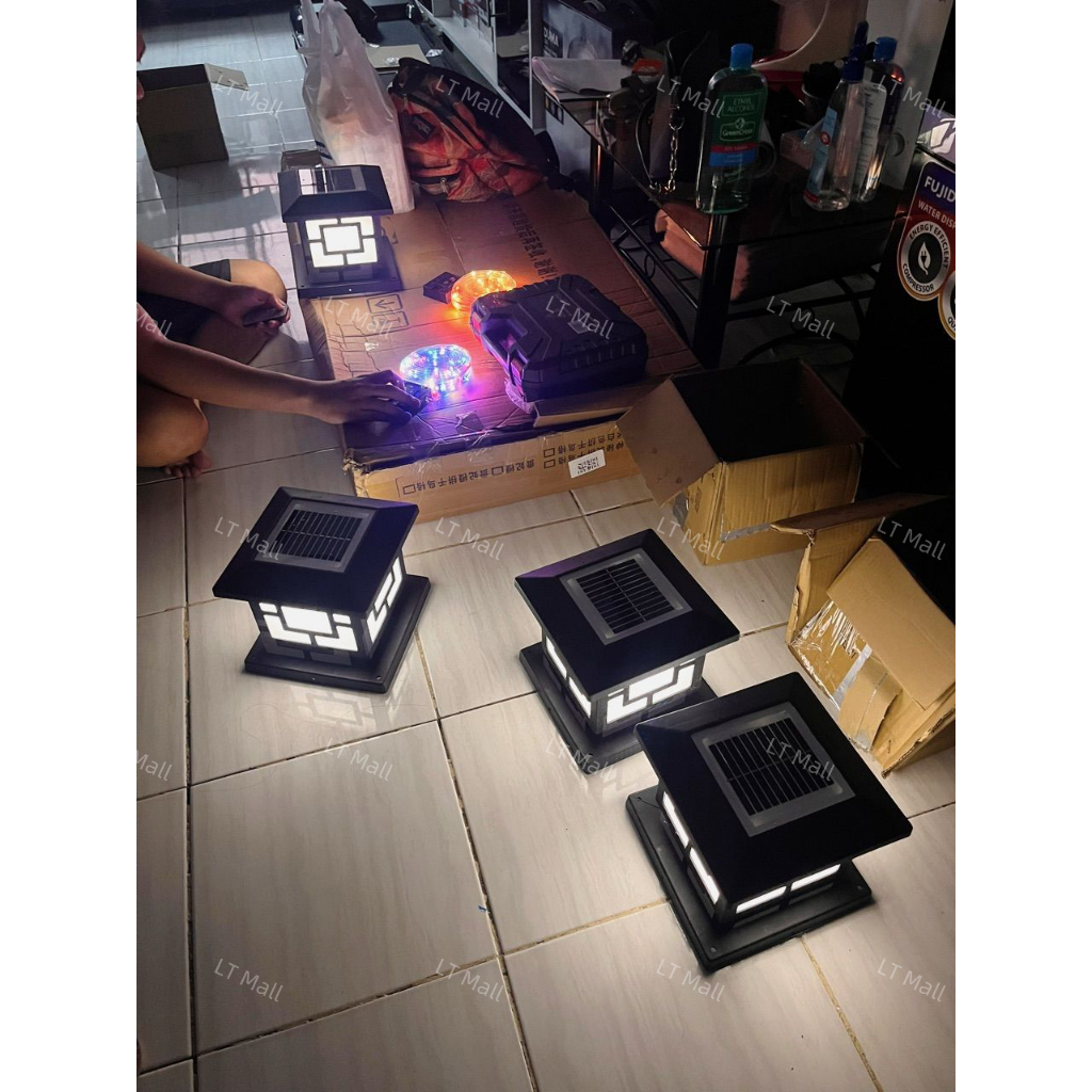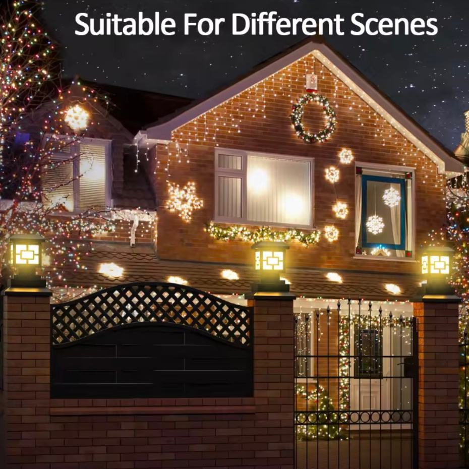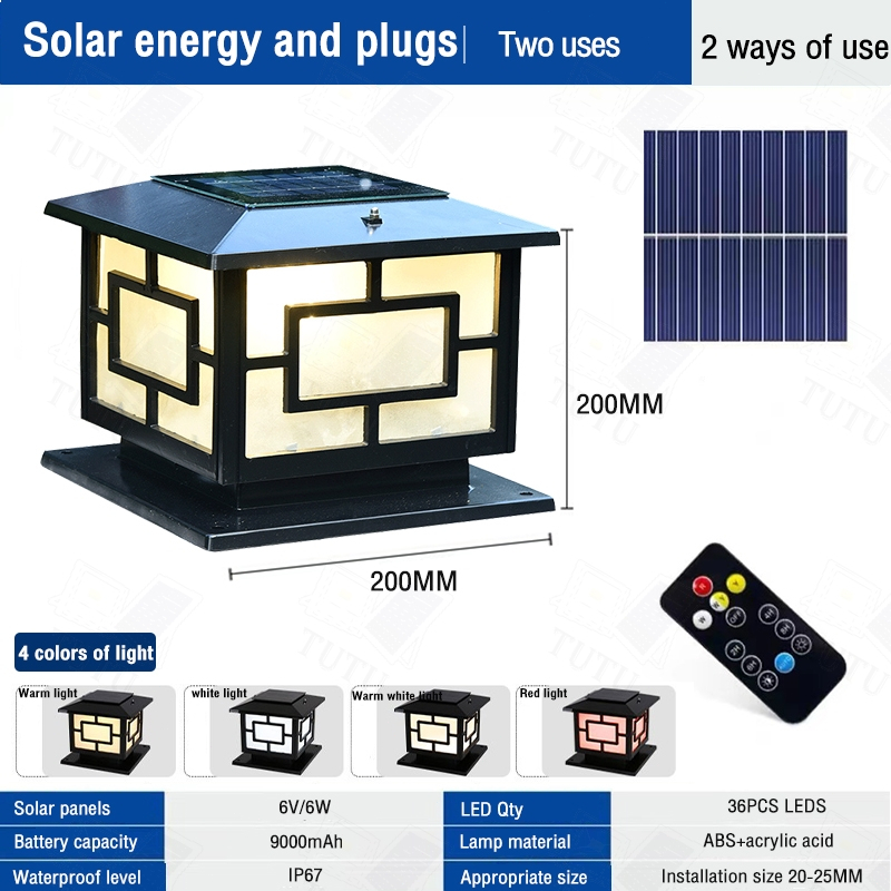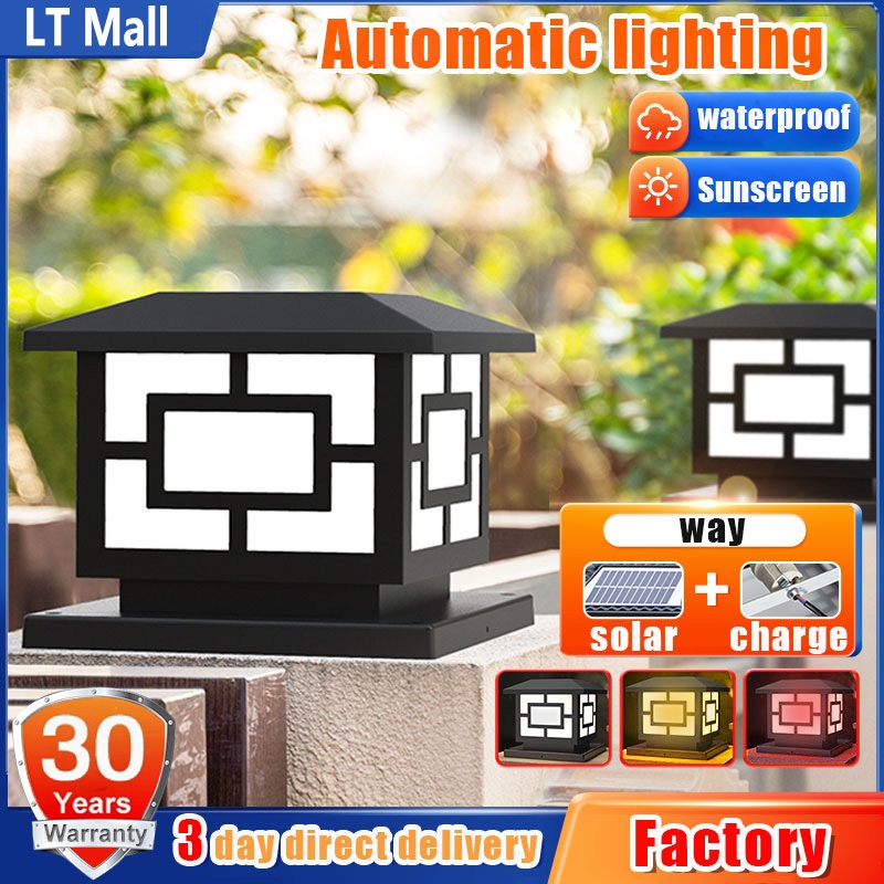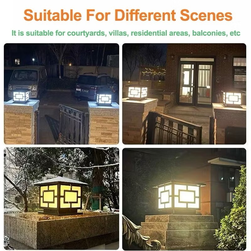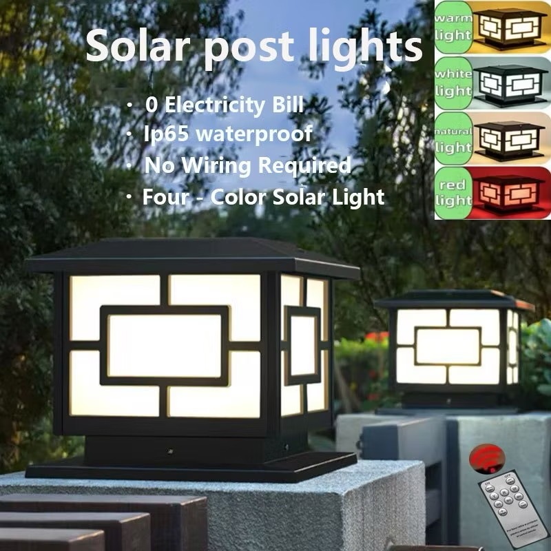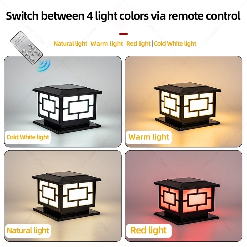 Solar Gate Pillar Light LED 4 Tricolor Outdoor Lamp Waterproof solar post light IP65 Gate Wall Light