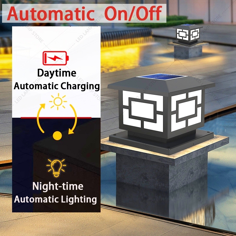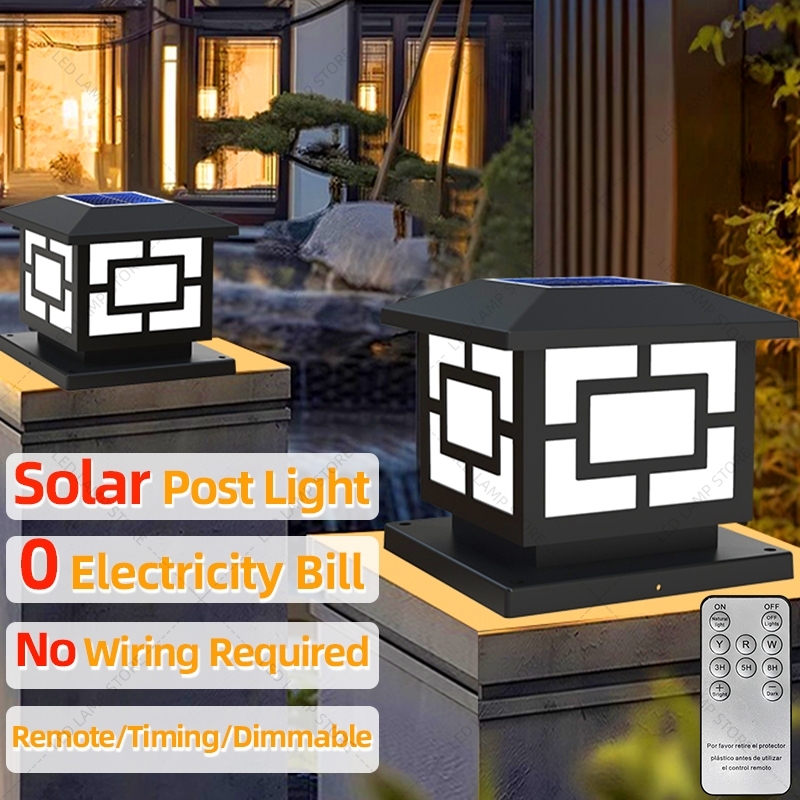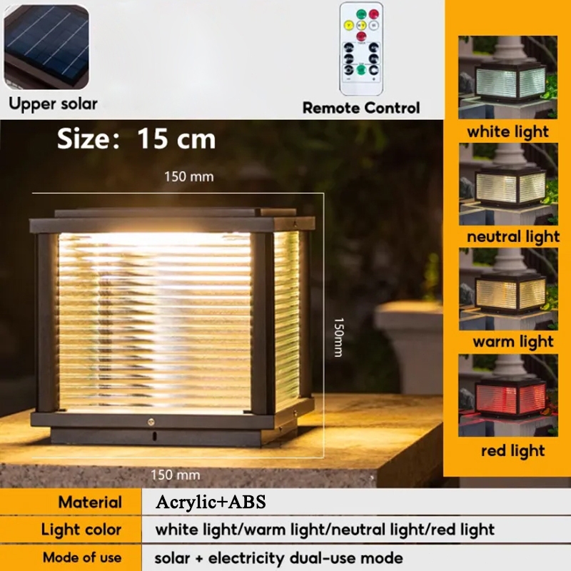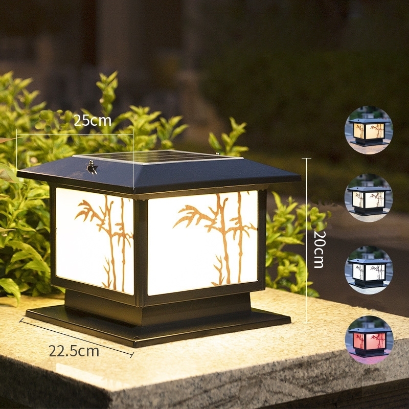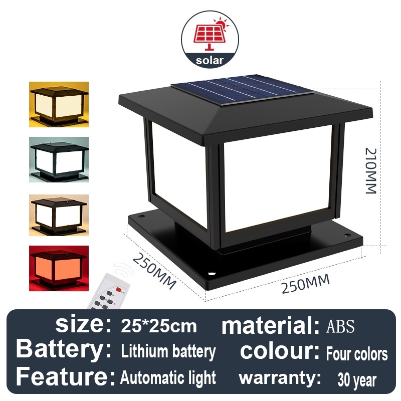 Solar Gate Pillar Light IP67 Solar post light LED 4 Tricolor Outdoor Lamp Waterproof Gate Wall Light