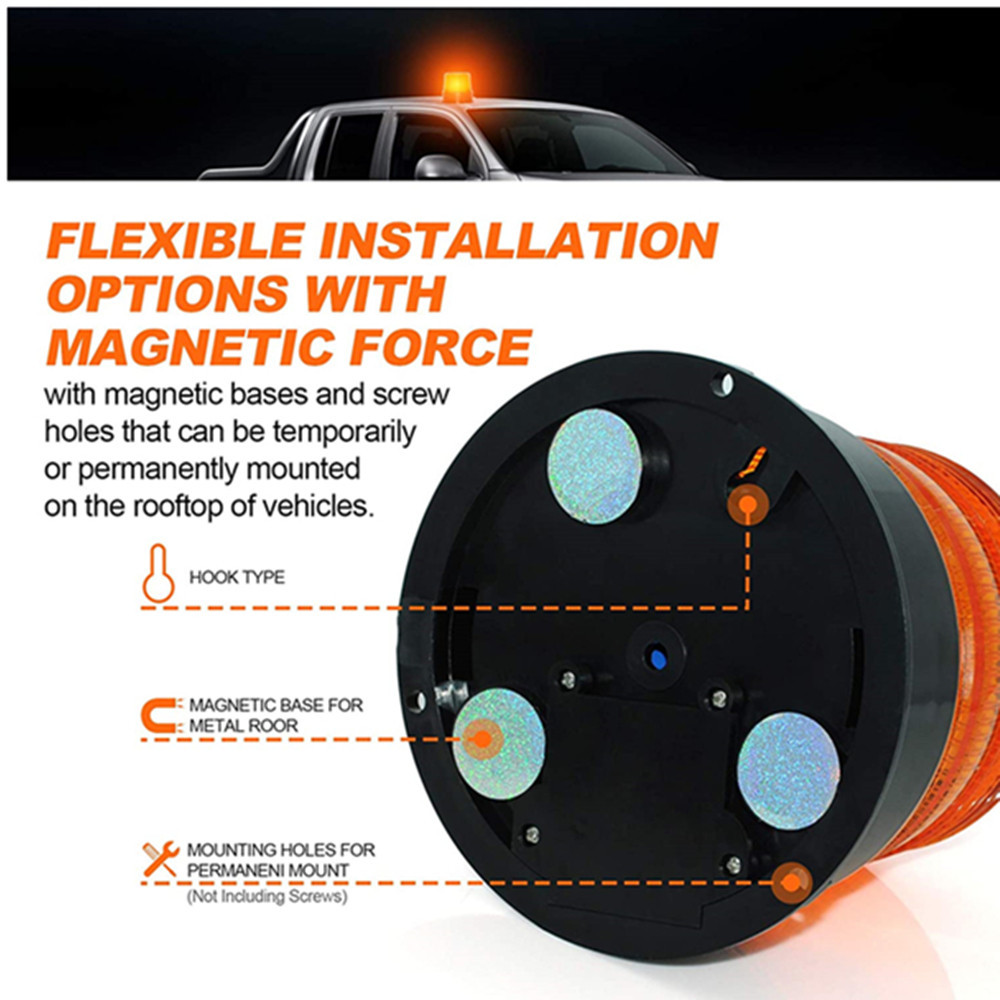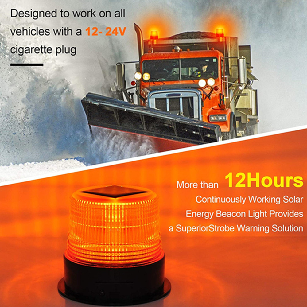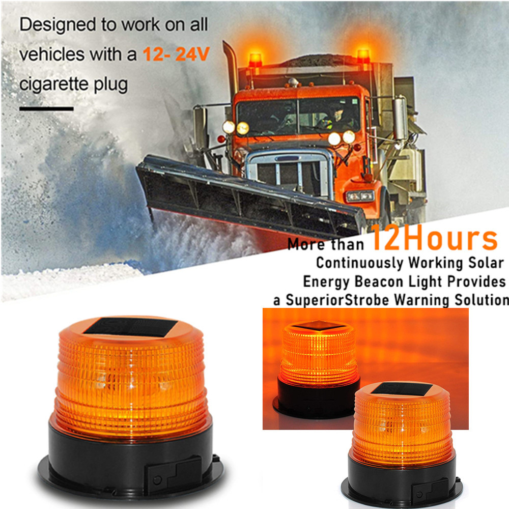Solar LED Beacon Light Wireless Waterproof Amber Warning Lights, with Magnetic Base, Rechargeable Rotating Strobe Lights
