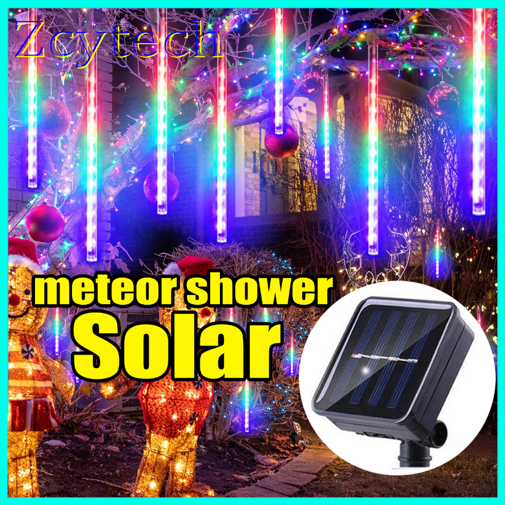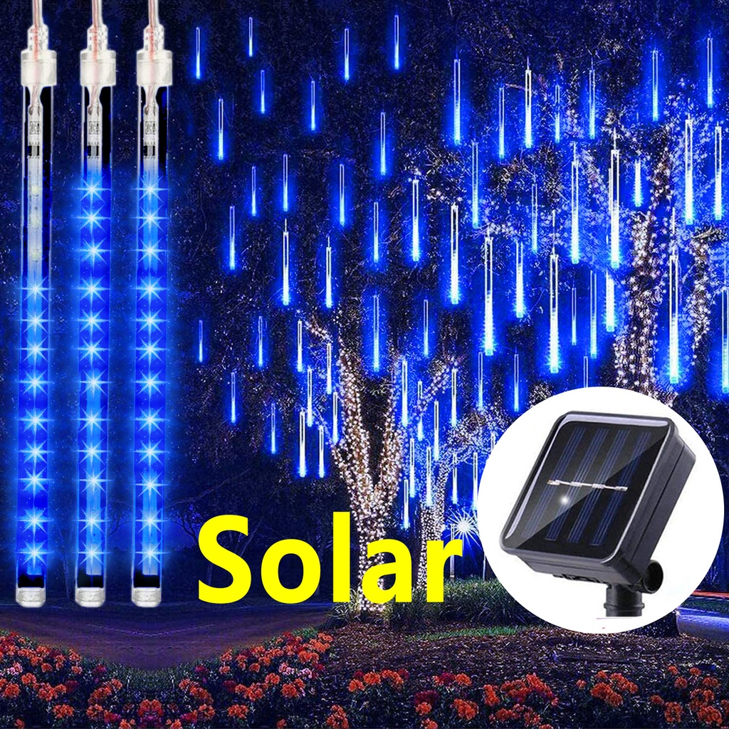 Solar LED Meteor Shower Rain Lights Tube Lamp Icicle Fairy String Lights for Outdoor Waterproof Garden Home Curtains Christmas Party Decoration
