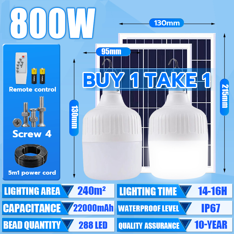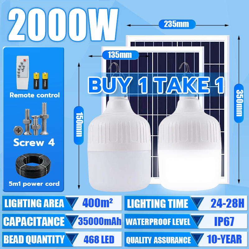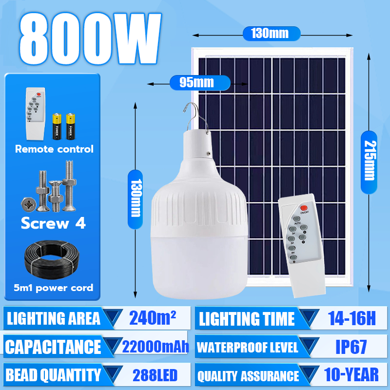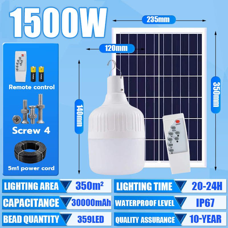 Solar Light Bulb light 80000W tri color bulb Solar light outdoor waterproof Led Lamp with panel