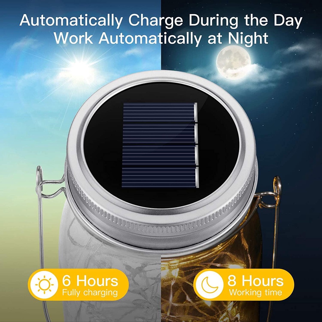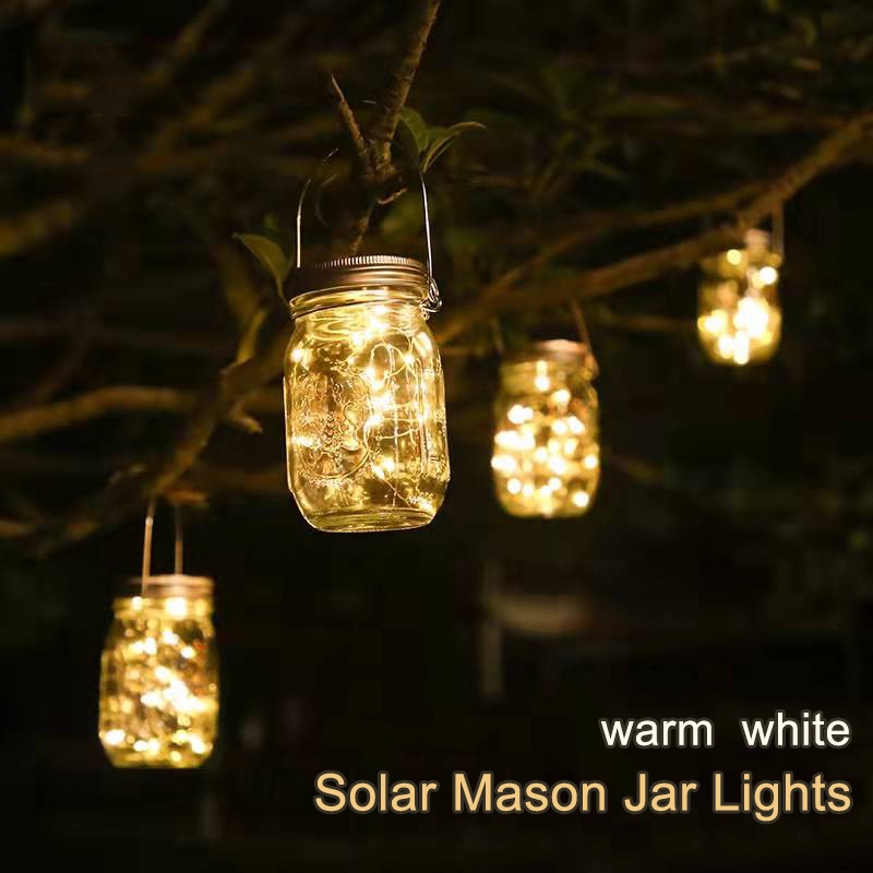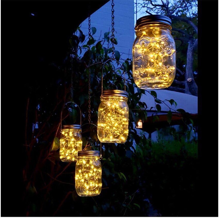 Solar Mason Jar Lights Hanging String Fairy Jar Solar Lantern Lights for Outdoor Patio Garden Yard
