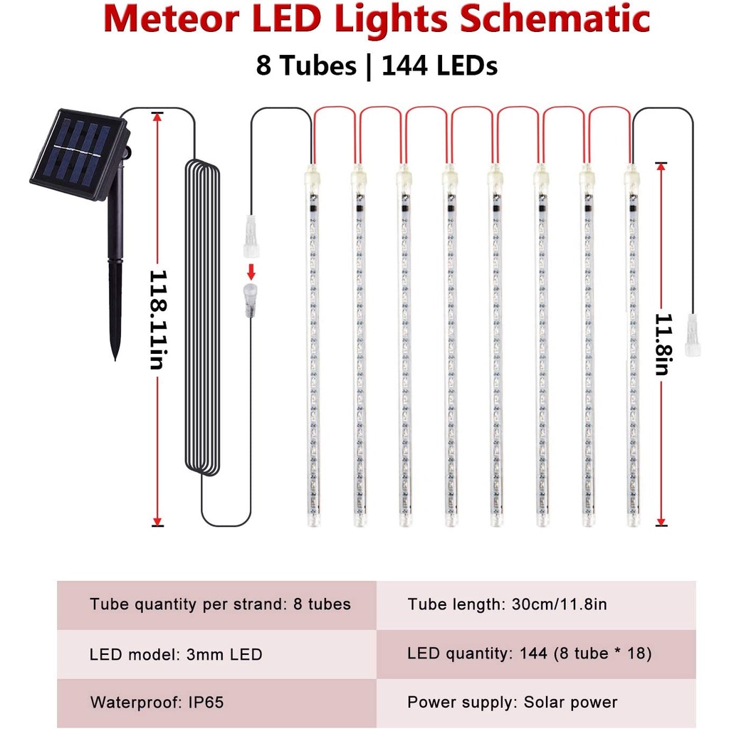 Solar Meteor Shower Rain Lights LEDs Multicolor Meteor Lights, Led Falling Rain Fairy String Lights