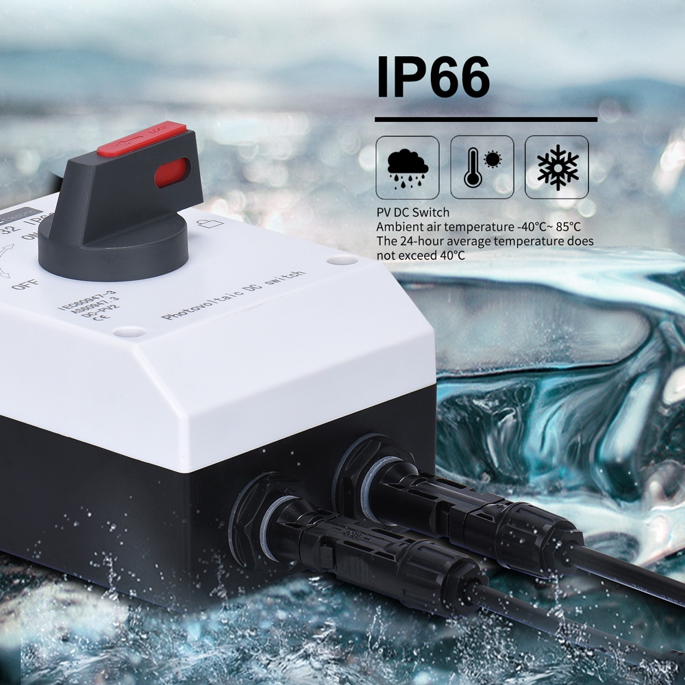 Solar PV DC Switch Isolator 1000V 1200V 32A Photovoltaic Interruptor Disconnect Outdoor IP66 Waterproof With Solar Connector