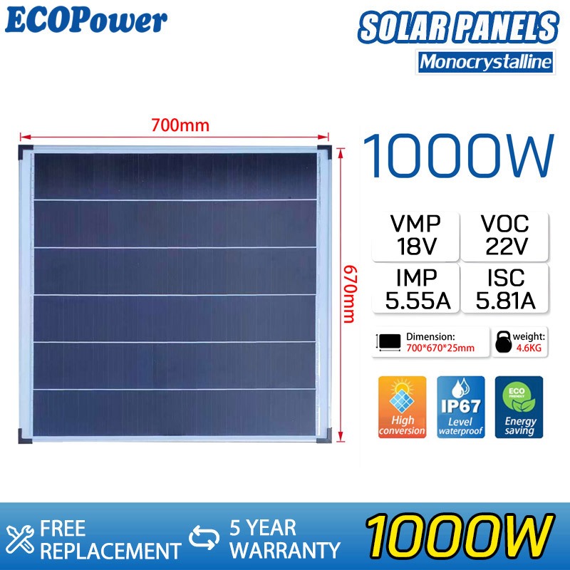 Solar Panel Brand New Monocrystalline Silicon 1000W Solar Panel Full Power Solar Cell