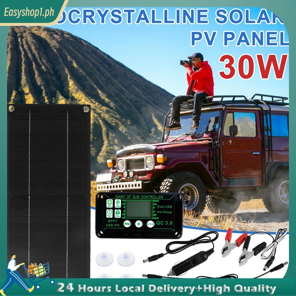 Solar Panel Kit 30W 12V Portable Solar Panel Charger Kit High Efficiency Polycrystalline Silicon Solar Trickle Charger for Car RV SHOPTKC6409