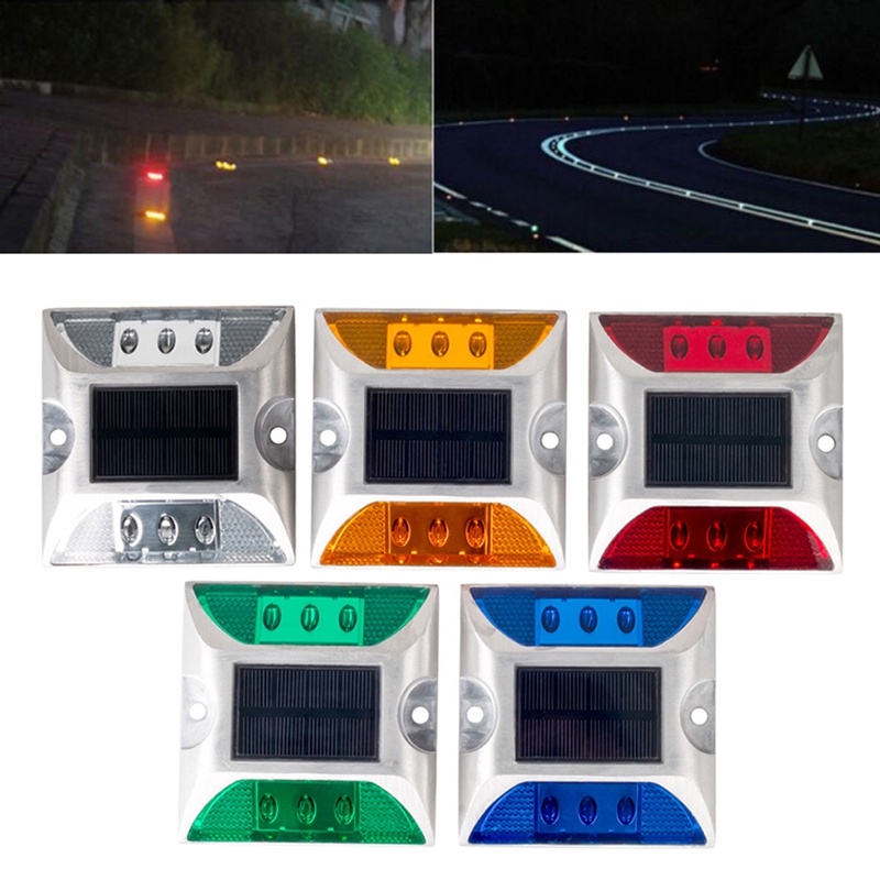 Solar Reflector Road Lights Stud LED Parking Light Road Reflector Rear Warning Lamps Aluminum LED Flashing Spike Anchor