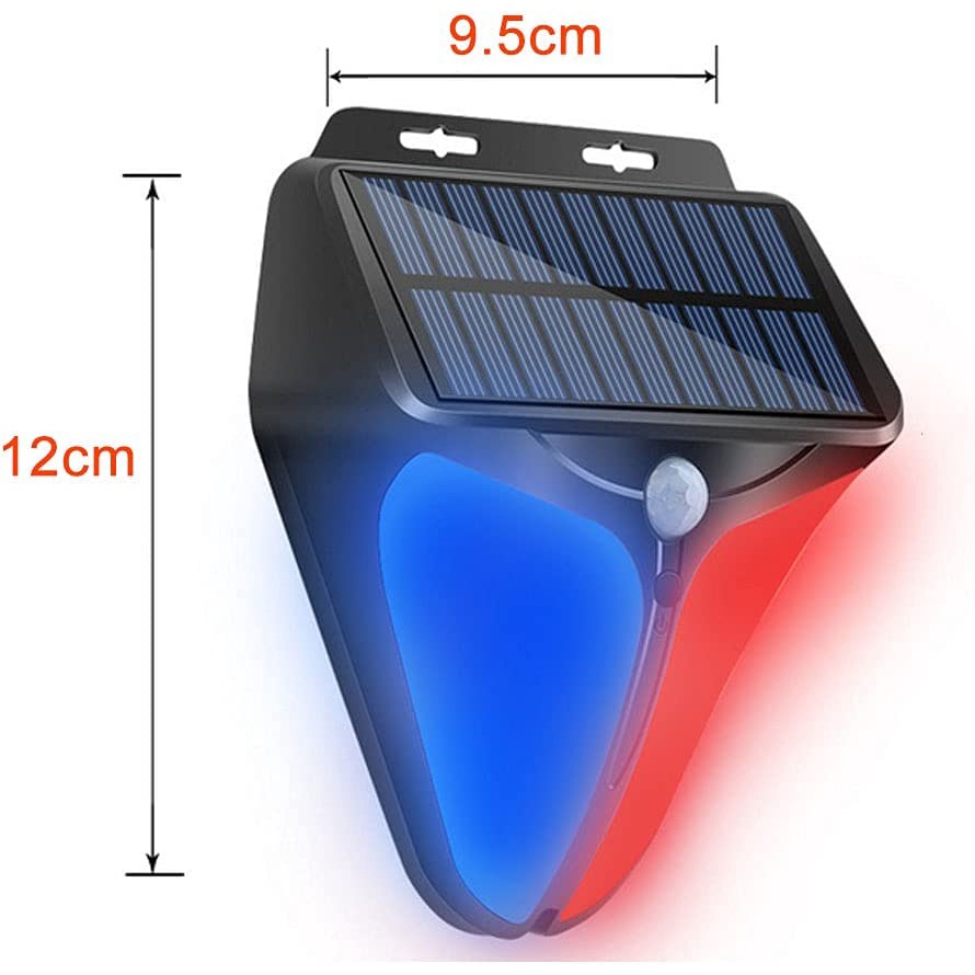 Solar Security Alarm 110db Sound & Light Alarm Human Body Sensor Warning Light Safety Flashing Lamp Outdoor Solar Light