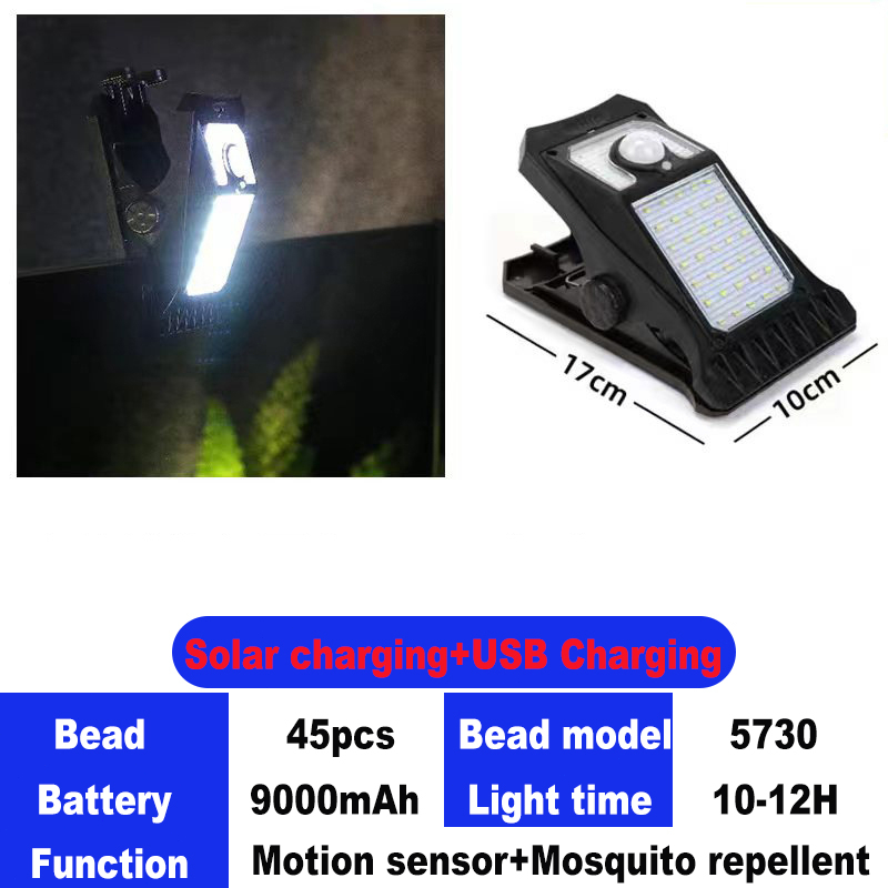 Solar clip light outdoor solar light IP67 waterproof portable solar garden motion sensor With Panel