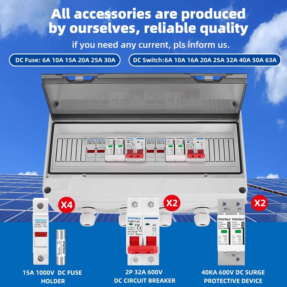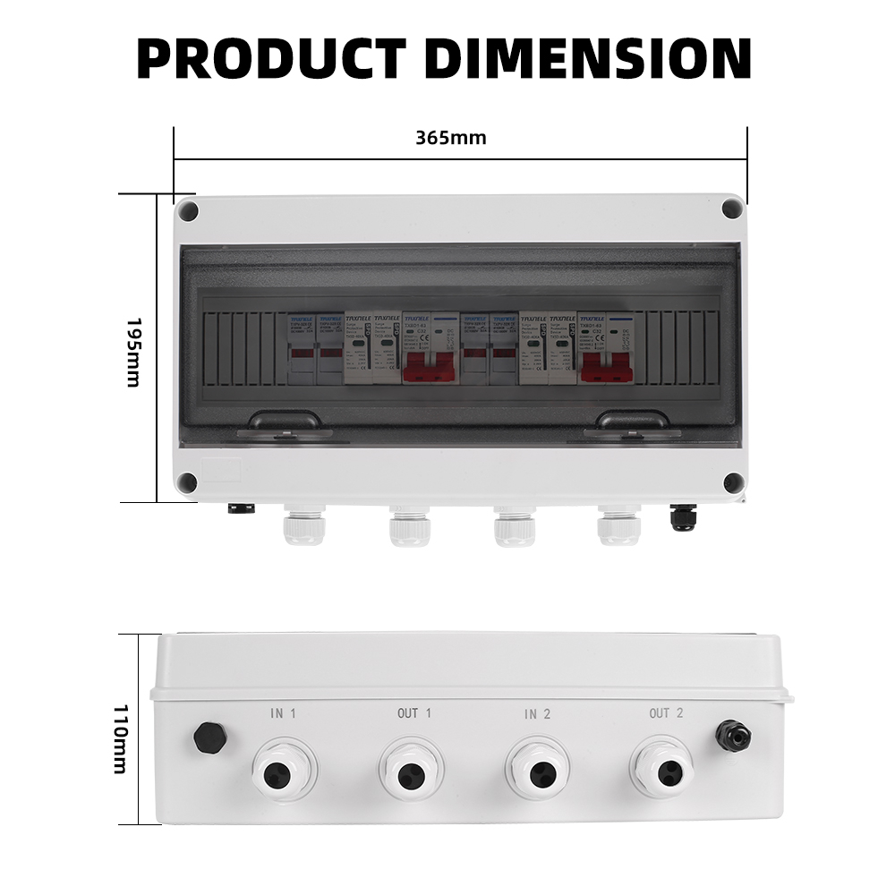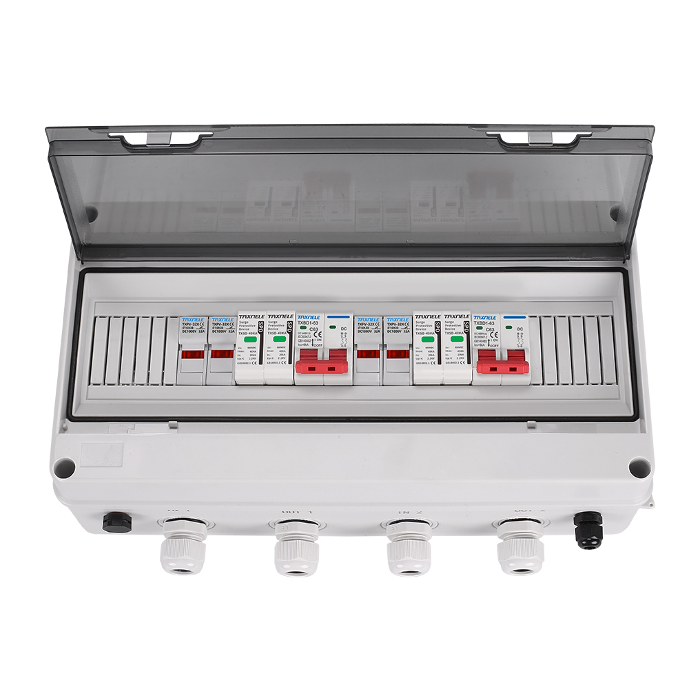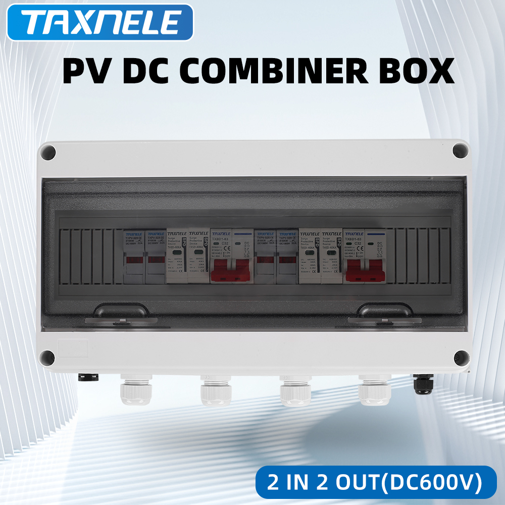 Solar photovoltaic PV Combiner Box 2 input 2 out 2 String Surge Lightning Protection DC 600V Fuse MCB SPD Waterproof Box IP65