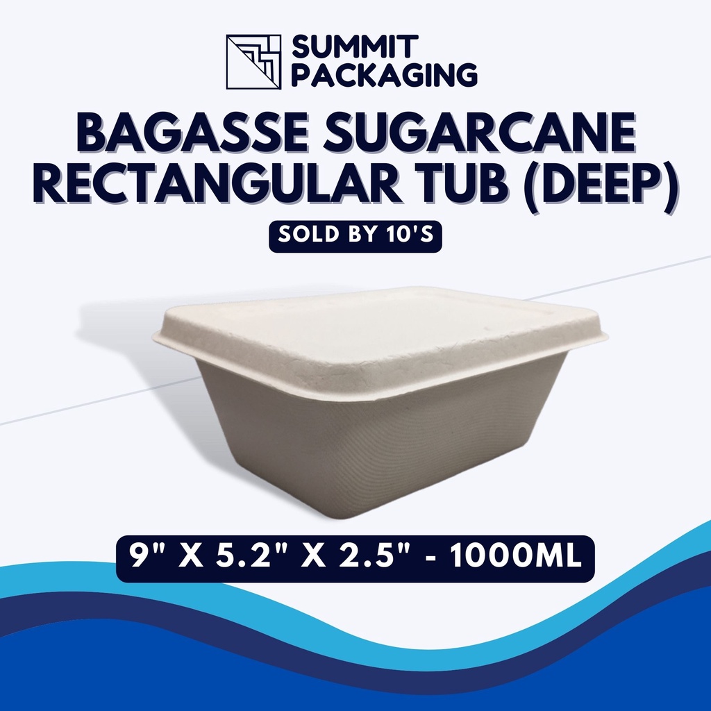 Sold By 10's Bagasse Sugarcane Containers With Lid ( Clamshell / Oval Tub / Rectangular Food tray )