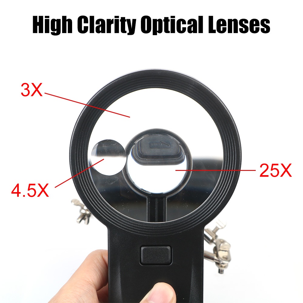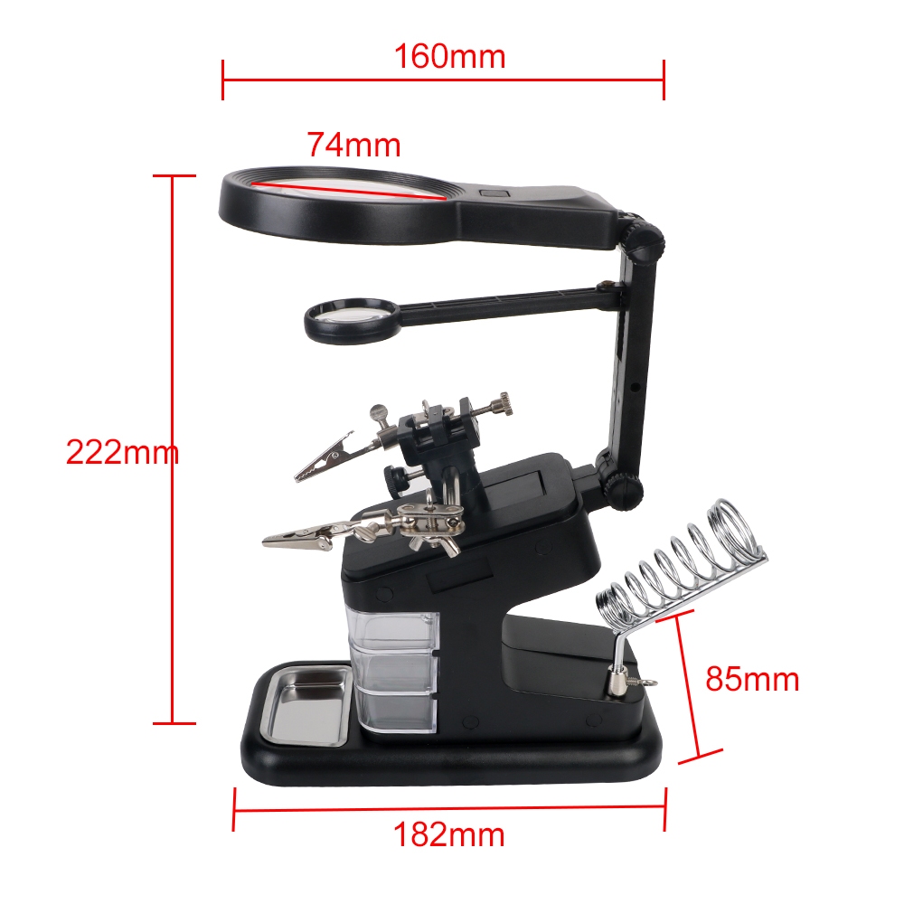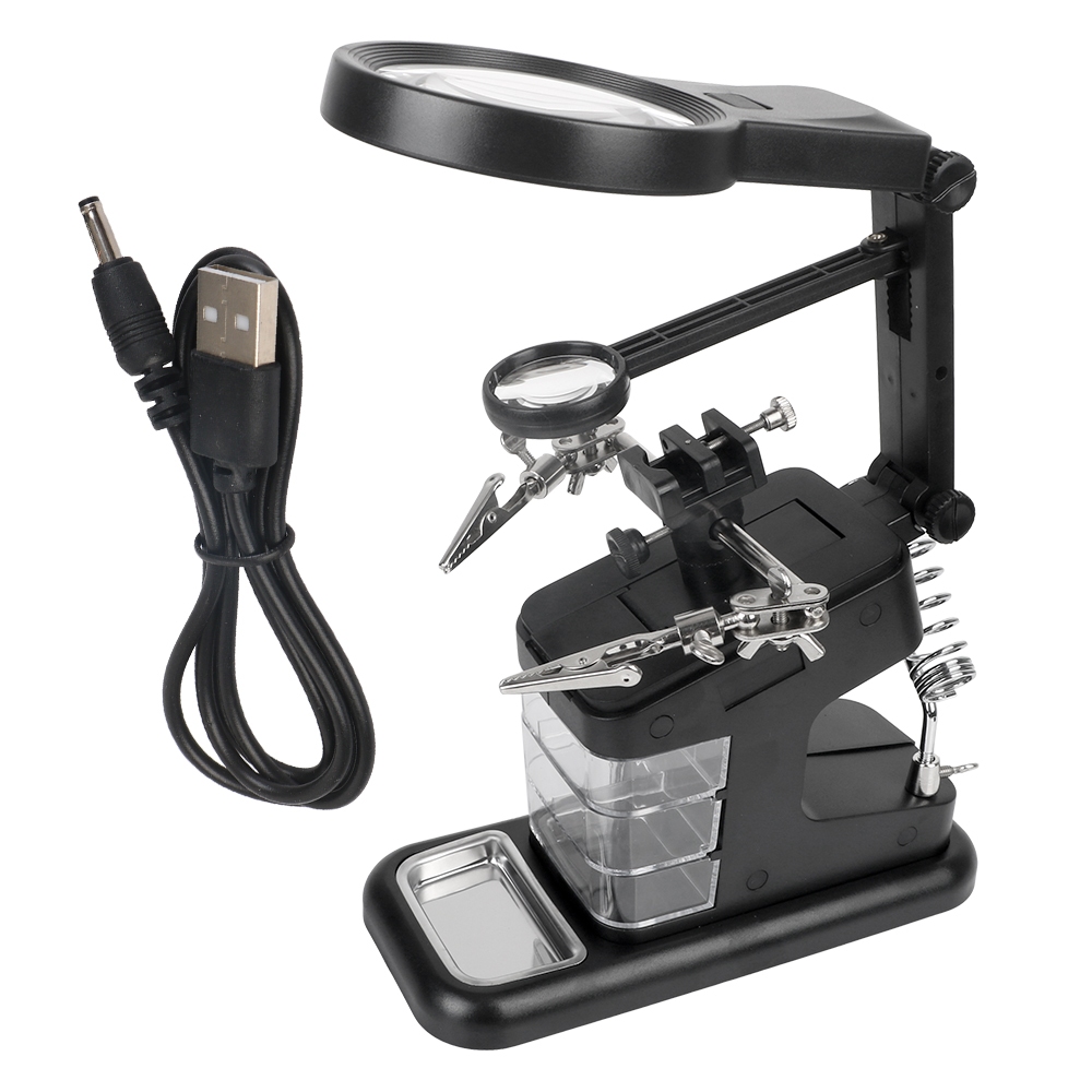 Soldering Iron Stand Welding Tool With 3X/4.5X/25X Magnifying Glass Illuminated LED Alligator Clip Holder 3 Hand Clamp