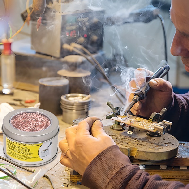 Soldering Iron Tip Cleaner Desoldering Copper Wire Cleaning Ball Aluminum Box Tin Remover Home Tool