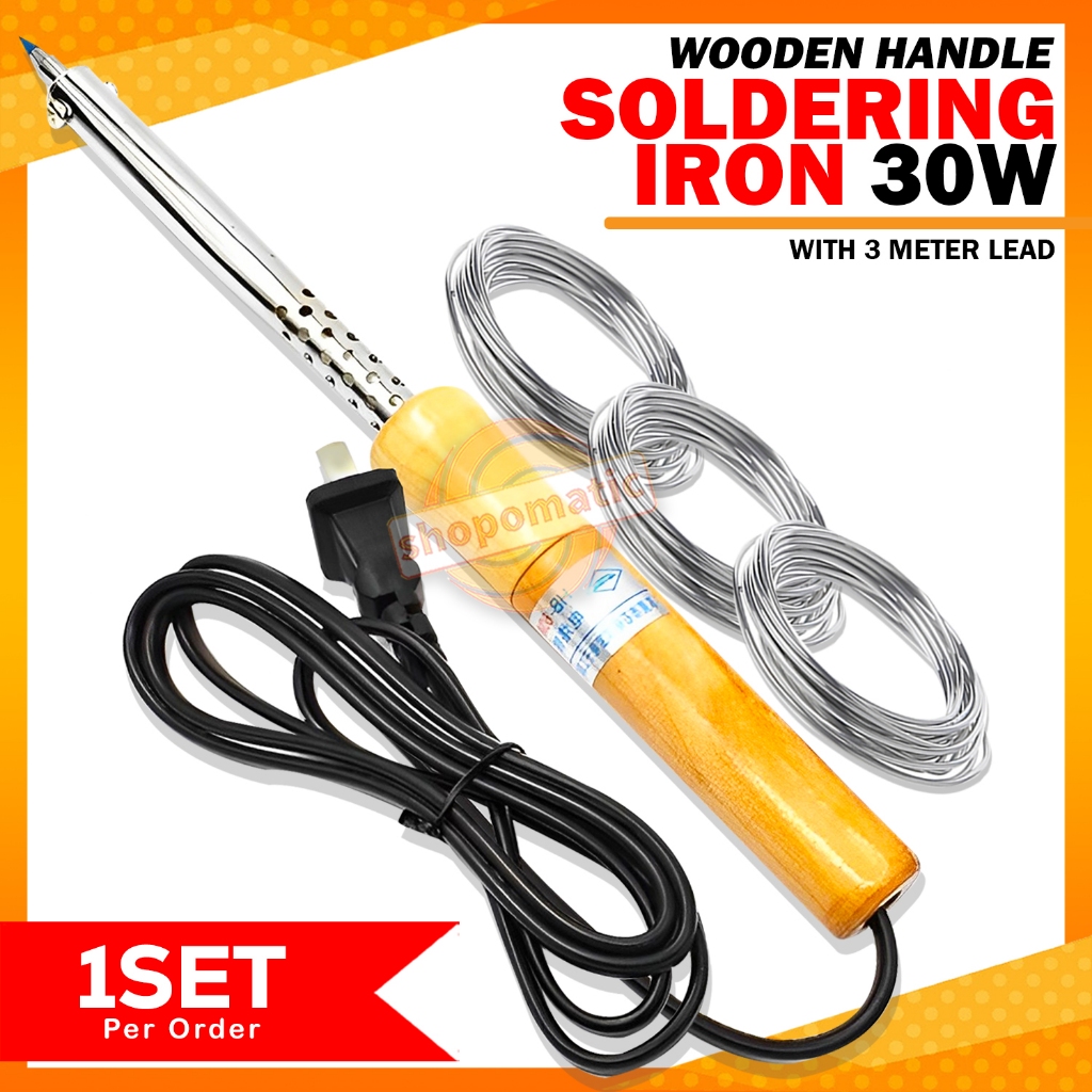 SHOPO Heavy-Duty Soldering Iron with Wooden Handle – 3 Meter Power Cord