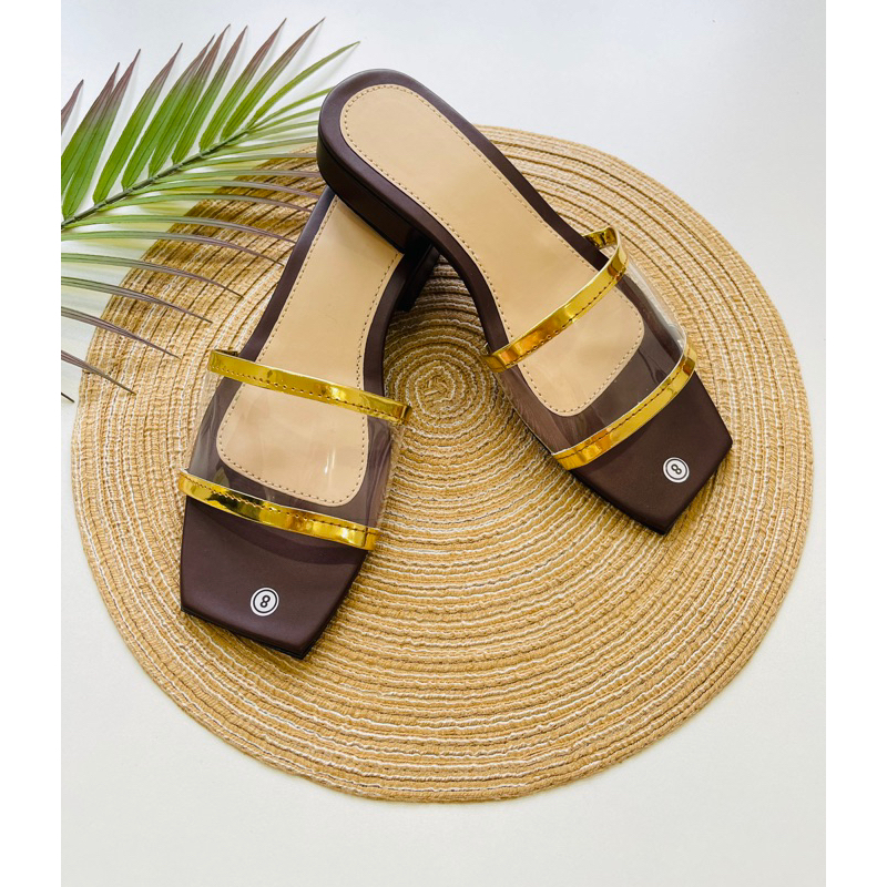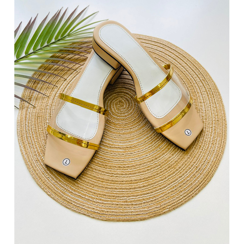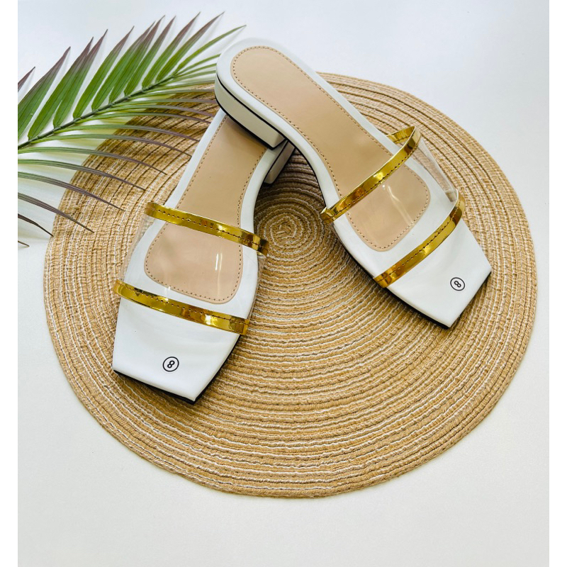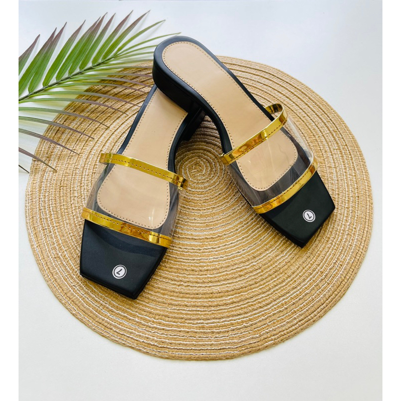 Solecreations 1 Inch Heels Transparent/Gold Sandals for Women (NO BOX)
