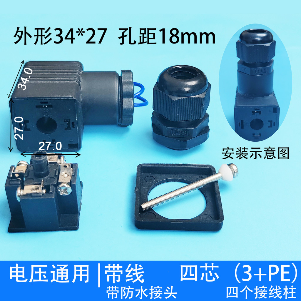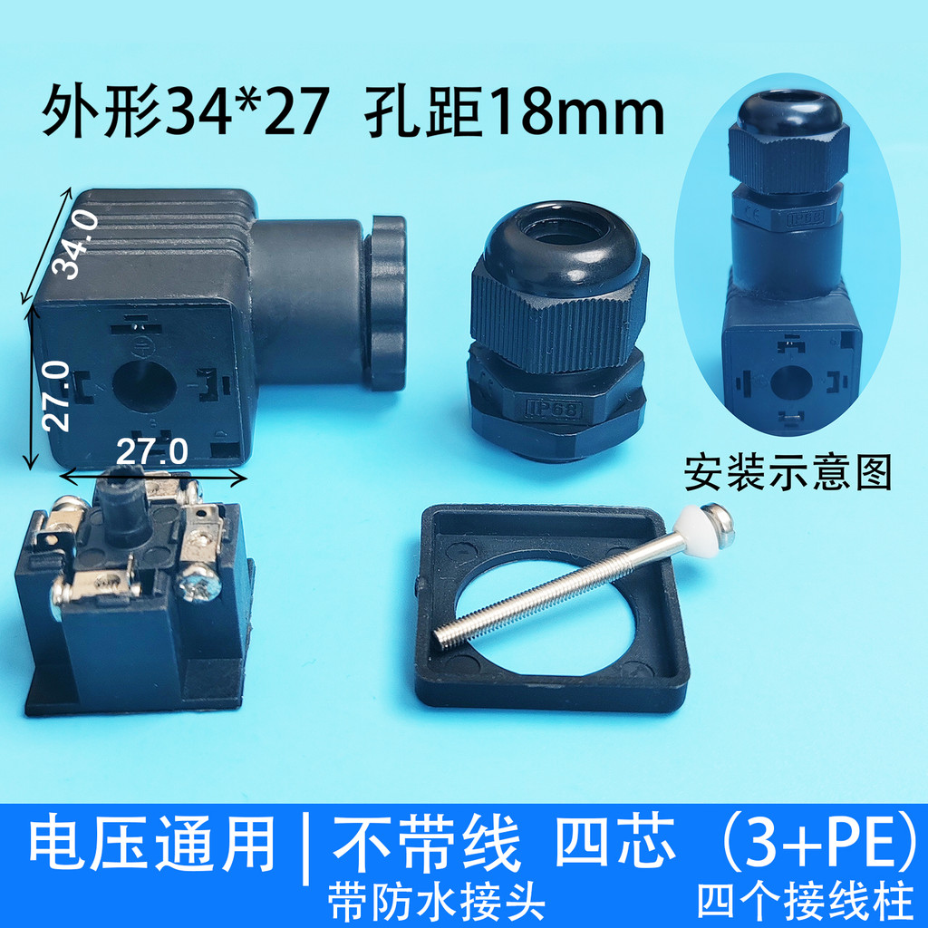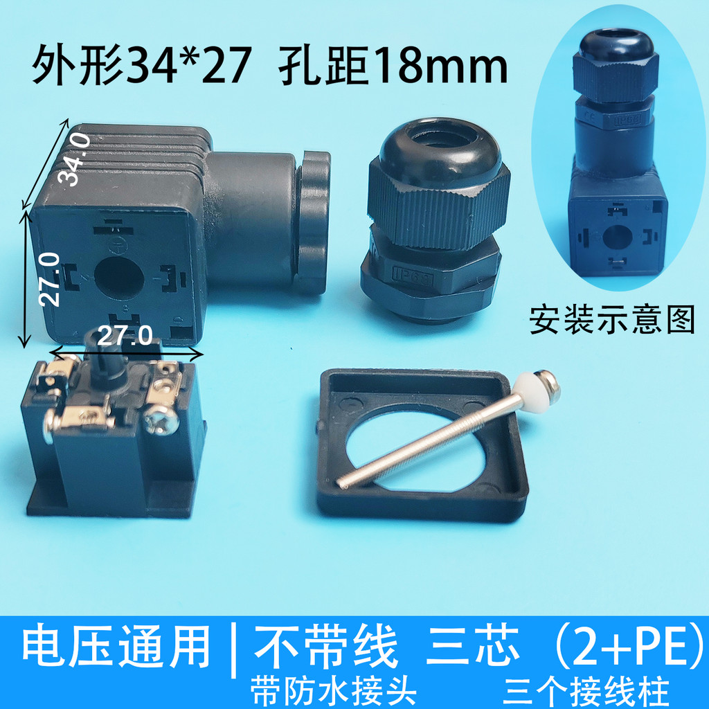 Solenoid Valve Plug 3pin, 4pin, Hydraulic Coil 220V 12V 24V Waterproof Junction Box, Socket