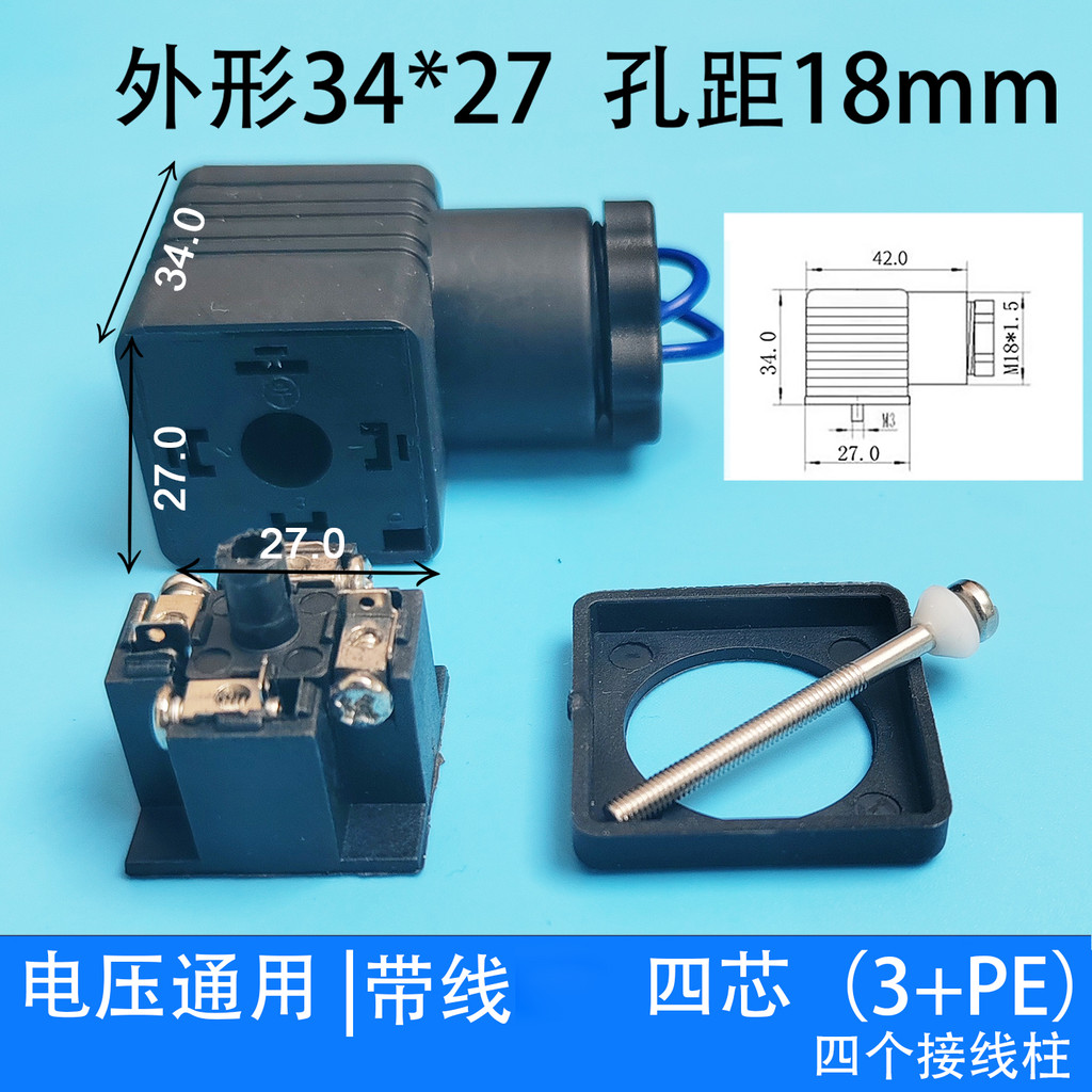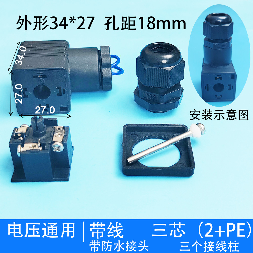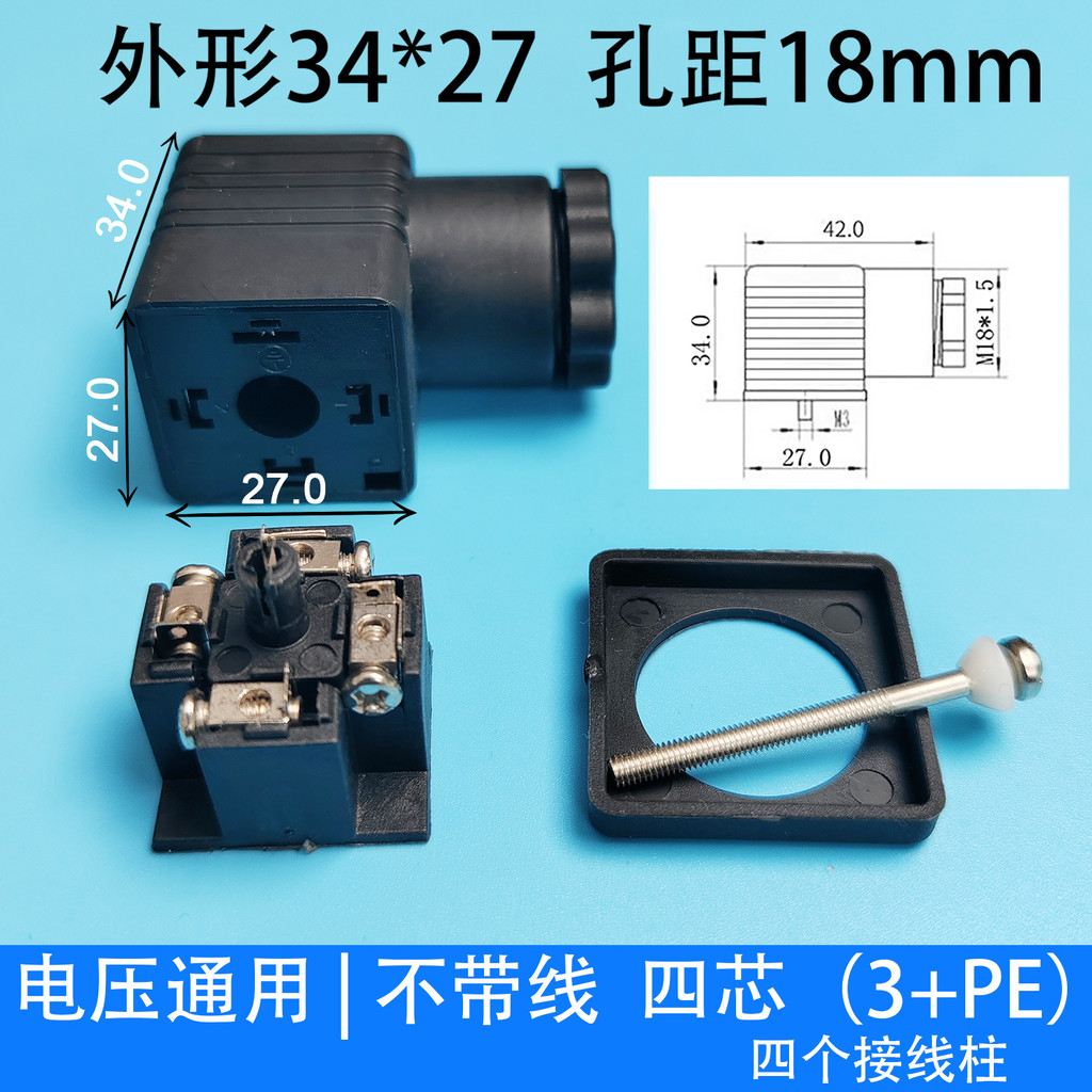 Solenoid Valve Plug 3pin, 4pin, Hydraulic Coil 220V 12V 24V Waterproof Junction Box, Socket