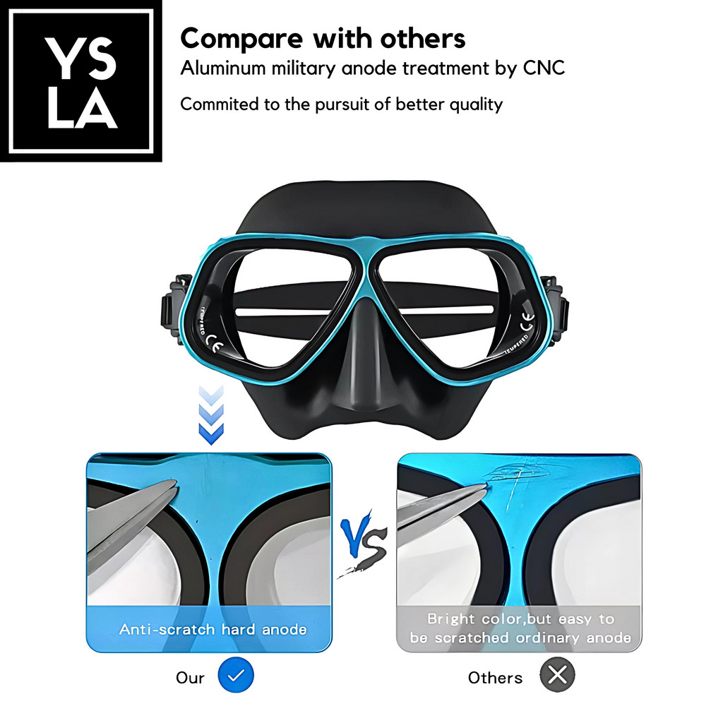 Solid Color Aluminum Frame Tempered Glass Freedive Mask only with Eva Box