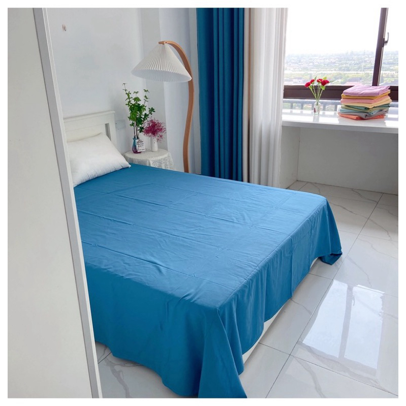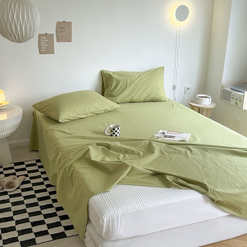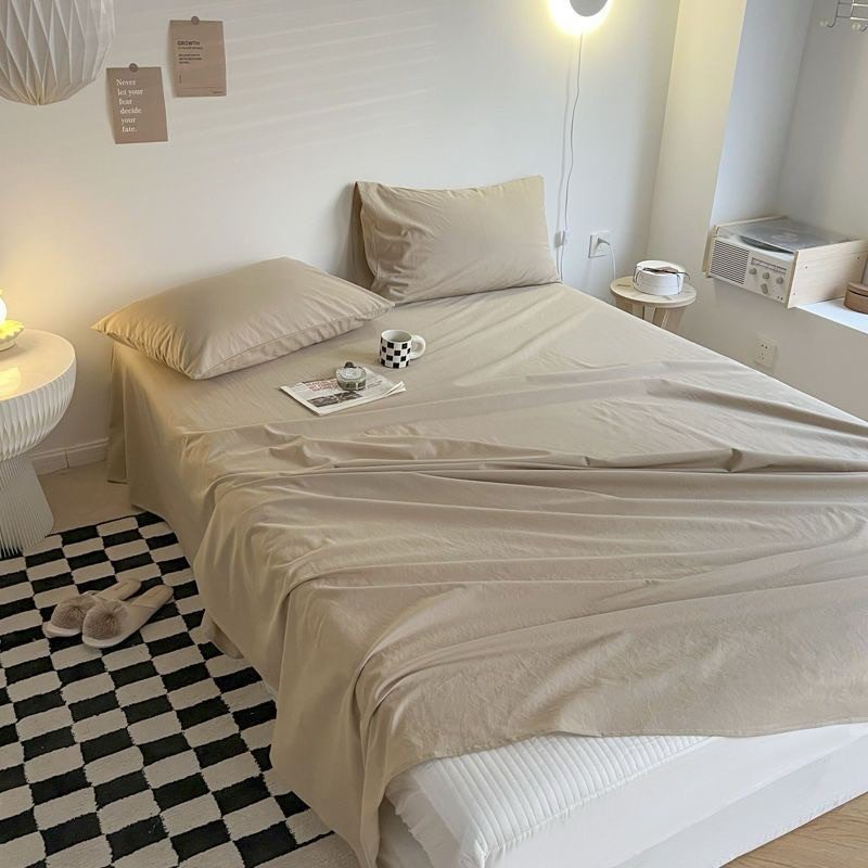 Solid Color Flat Sheet Queen King Size Bed Sheet High Quality Washed Cotton Bedsheet (No Pillowcase)
