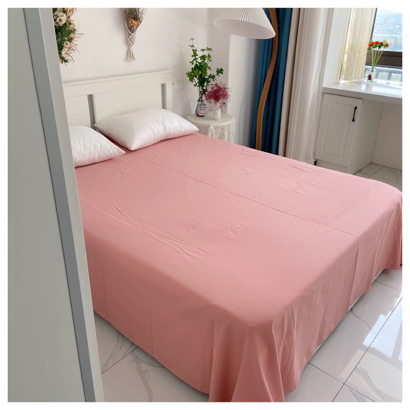 Solid Color Flat Sheet Queen King Size Bed Sheet High Quality Washed Cotton Bedsheet (No Pillowcase)