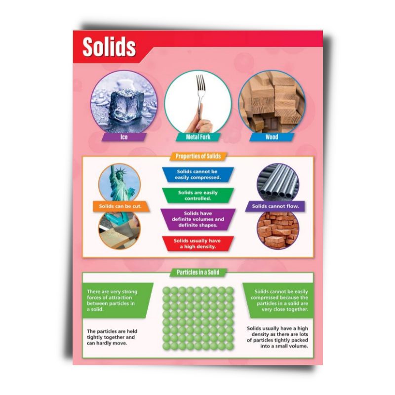 Solid, Liquid & Gas Educational Laminated Wall Chart for kids, A4 Size